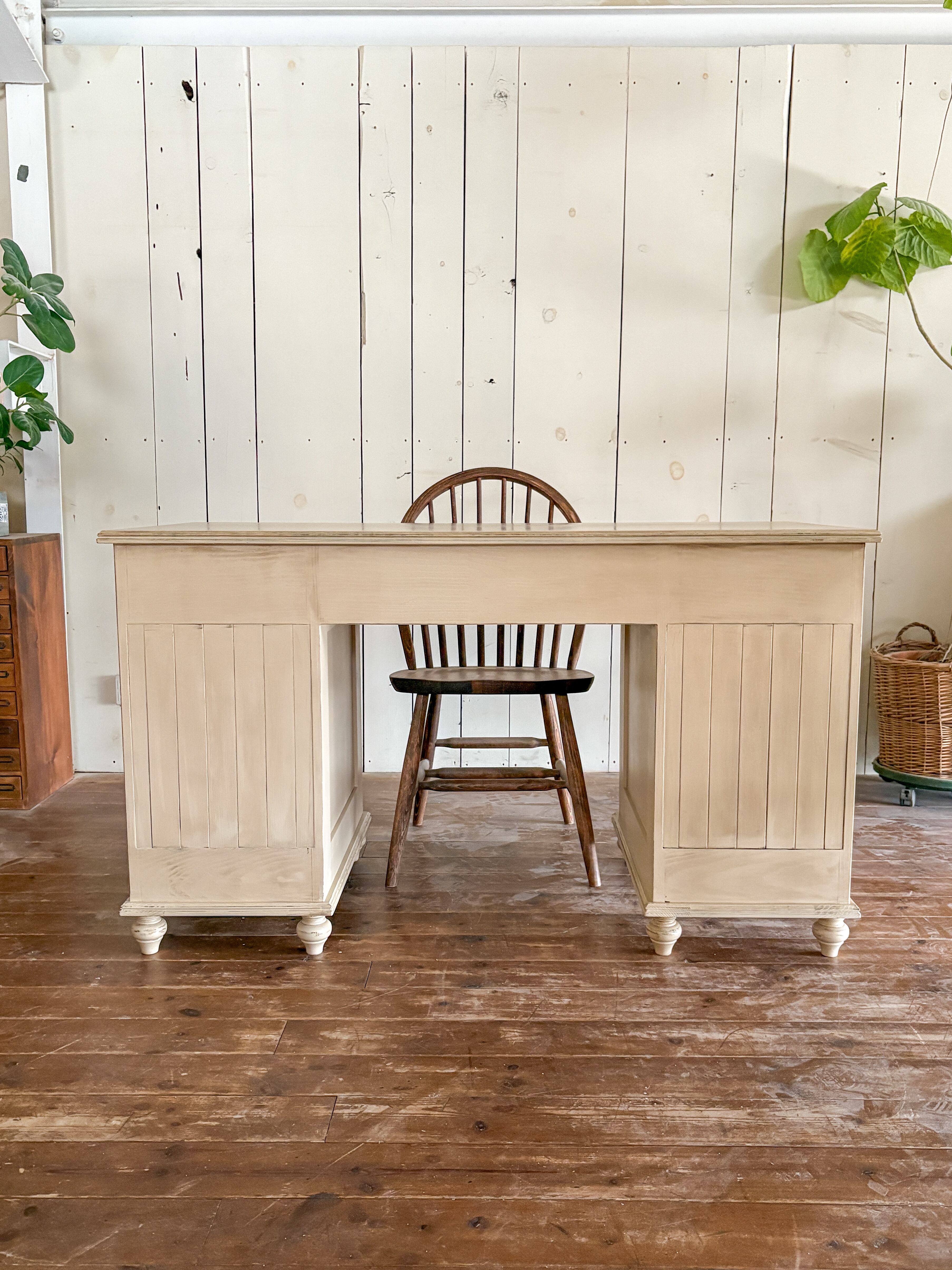 ヨーロッパの蚤の市で見つけたアンティークデスクをイメージして、汚れた質感を表現した「ベージュ汚し色」。届いた時からアンティーク家具のような落ち着いた雰囲気を楽しめるインテリアです。熟練の家具職人が1点1点手作りするオーダーメイド家具専門店です。制作実績は3500件以上、家具専門デリバリーで日本全国に安全安心配達いたします。