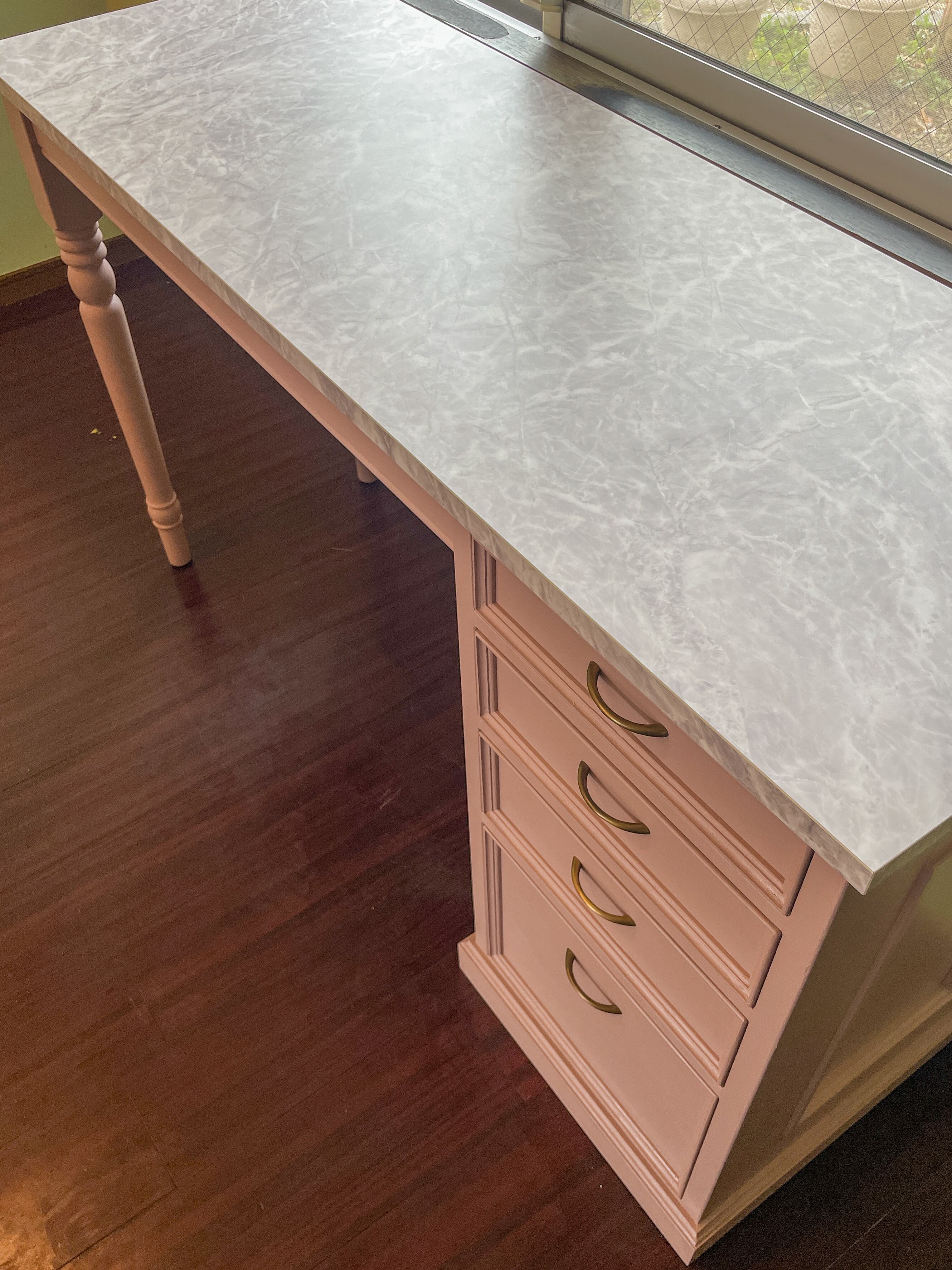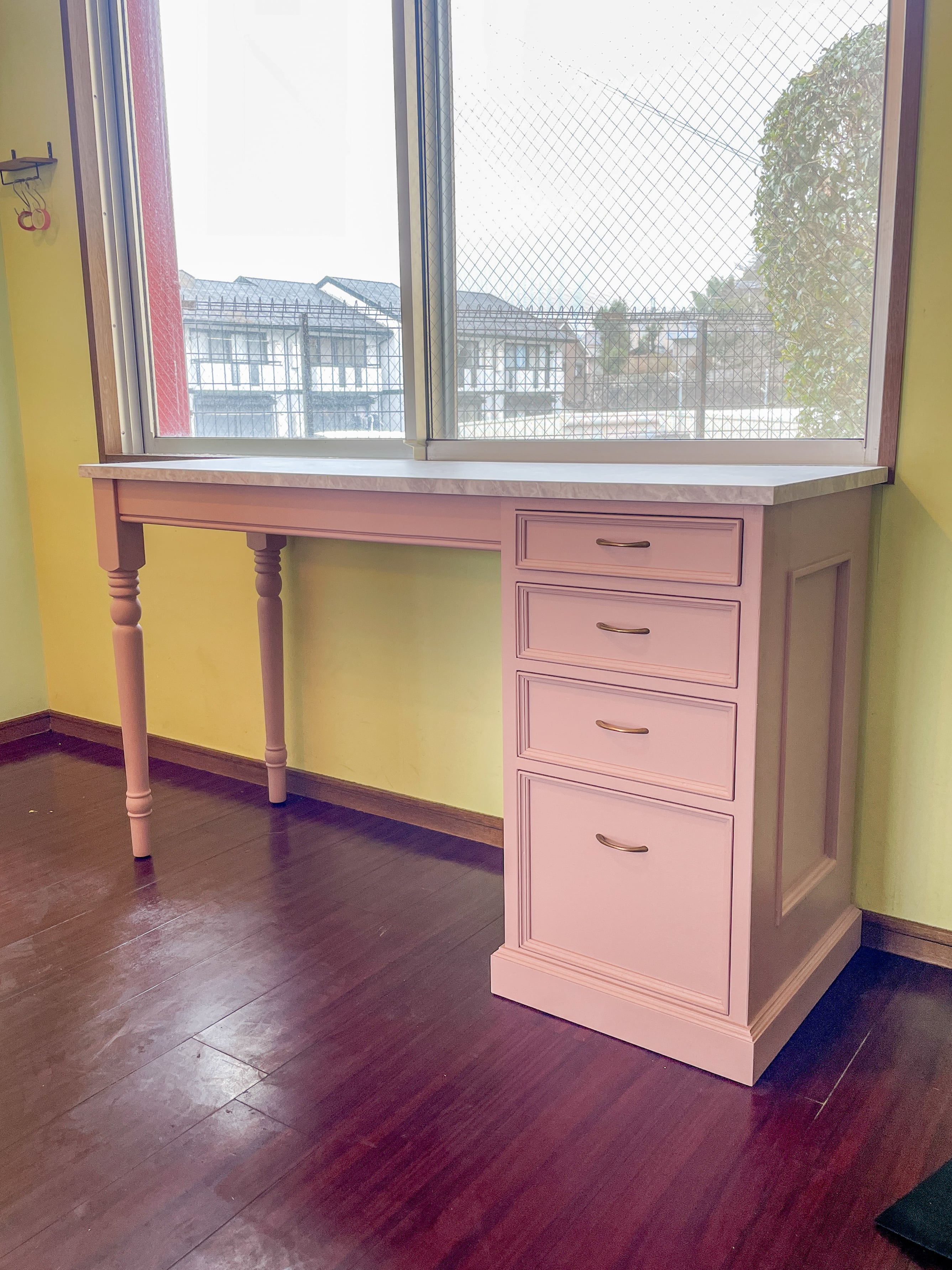 引出し付きネイルテーブル大理石1300 (ネイルデスク・オーダーメイド家具) W1300×D450 かわいいドレッサー