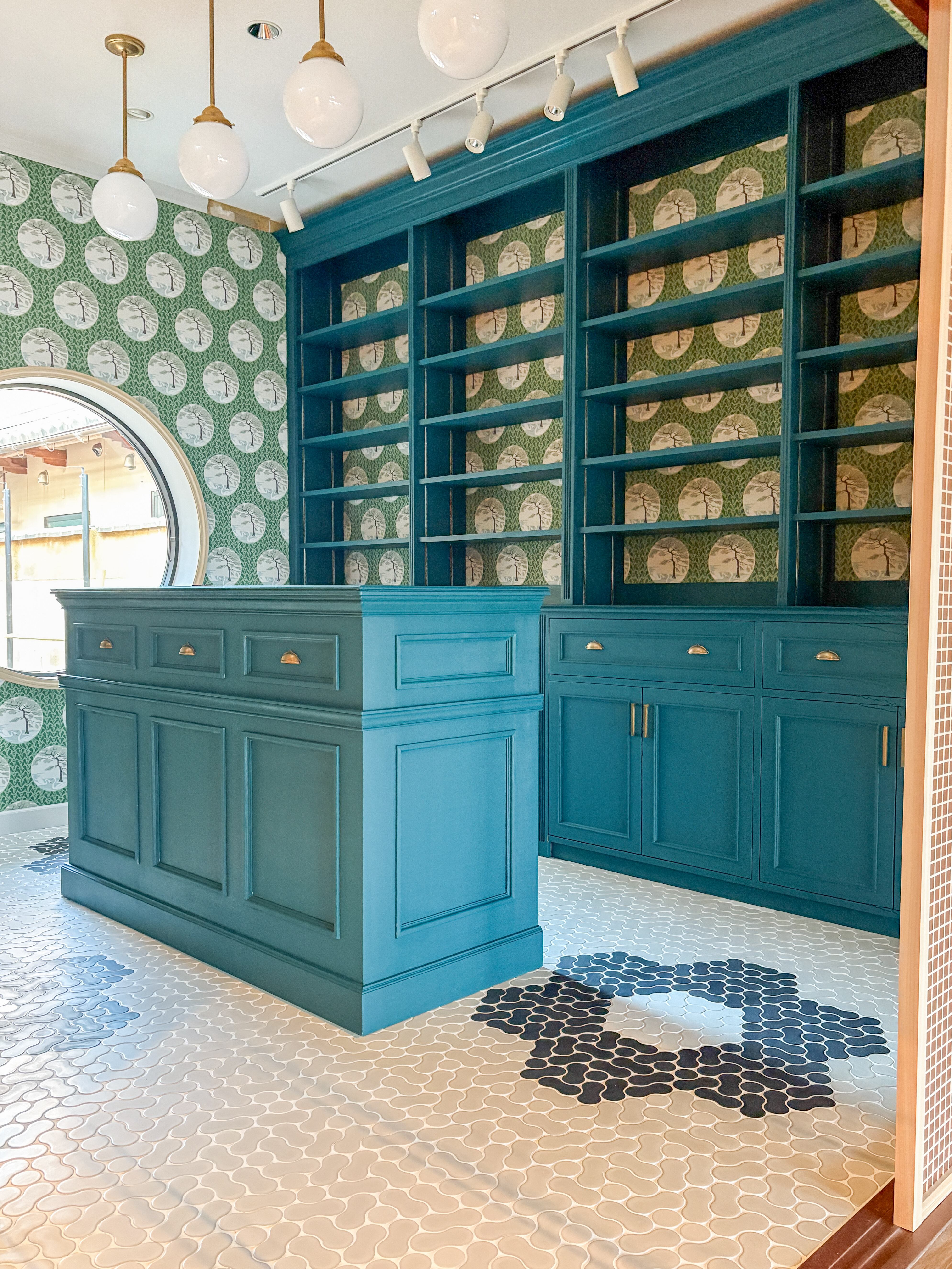 京都の古民家を改装したカフェに、おしゃれな海外インテリア風の家具を納品させていただきました。目を引くグリーンは特注カラー、クラシックアンティーク調のレジカウンターです。レセプションカウンターは、お客様を出迎えるお店の顔のような家具です。飲食店、美容サロン、お花屋さんなど、様々な店舗向けの店舗家具製作をお任せください!