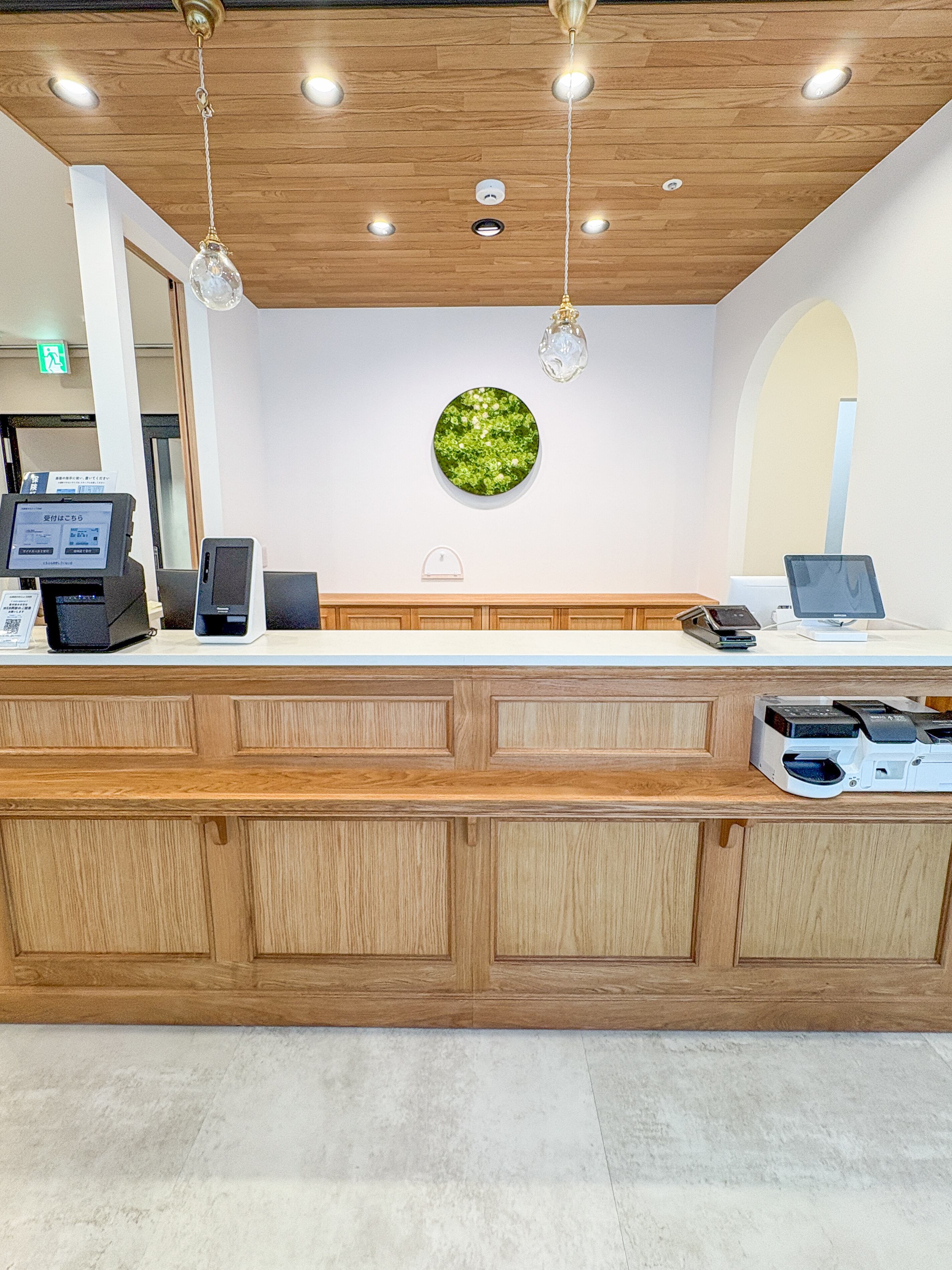クリニック医院向け受付カウンター164 (オーダーメイドレジカウンター)W2700 自動釣銭機 ホワイトオーク材