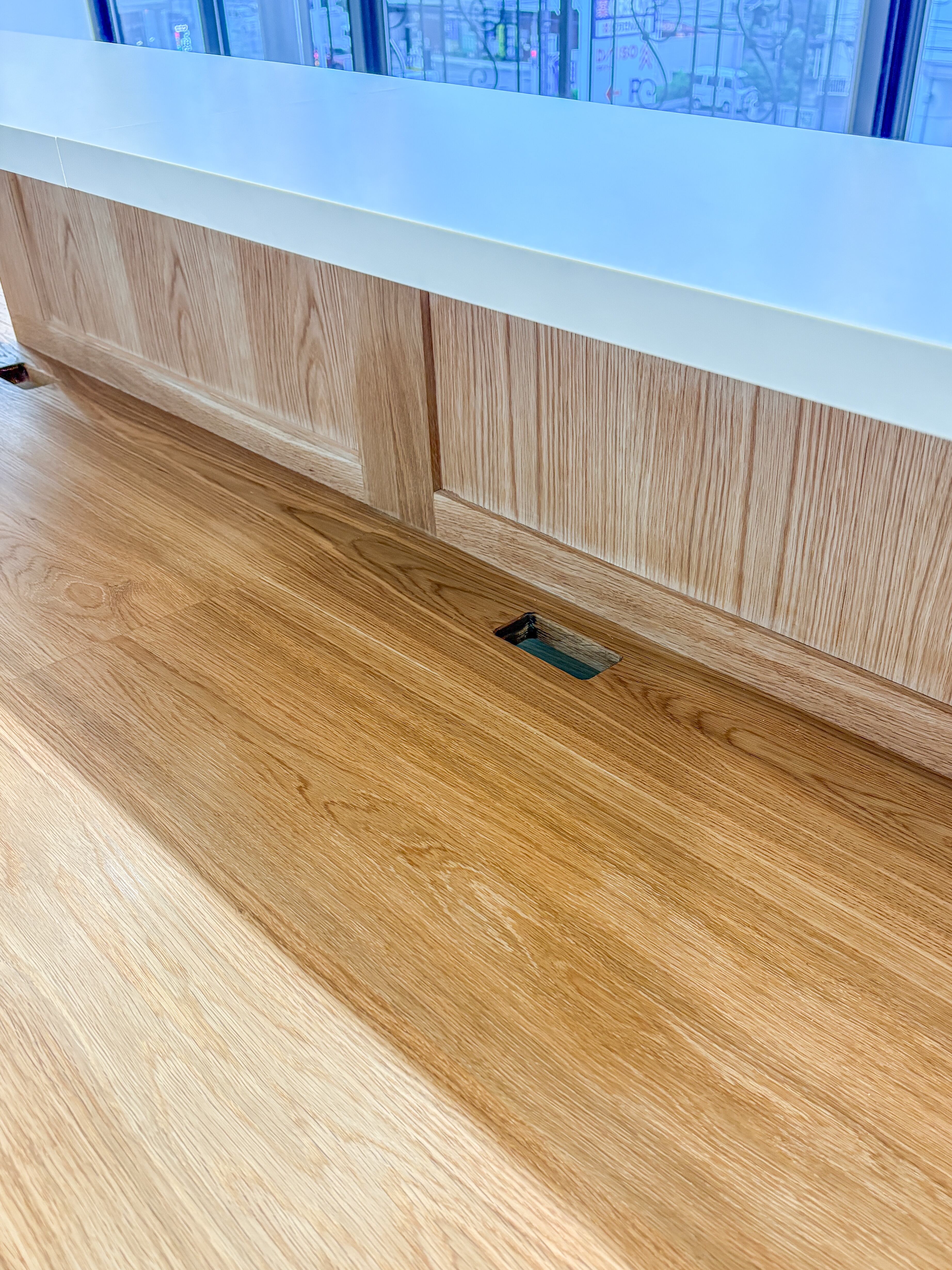 自動釣銭機を収納する開口を特設しました。これから様々な店舗でこのような仕様が活躍すると想像されます。美容室、ネイルサロン、レストラン、宿泊施設など、様々な店舗向けレジカウンター、店舗什器をオーダーメイドで製作作しております。制作実績は3500件以上、熟練の日本職人が手作りします。家具専門デリバリーで、日本全国に安心安全デリバリーでお届けいたします。