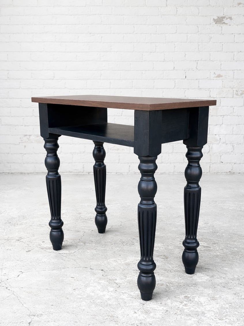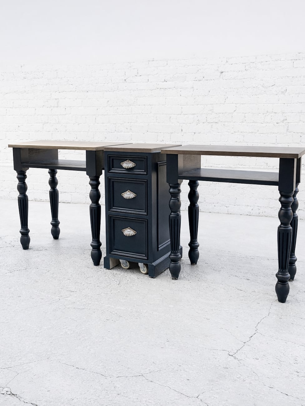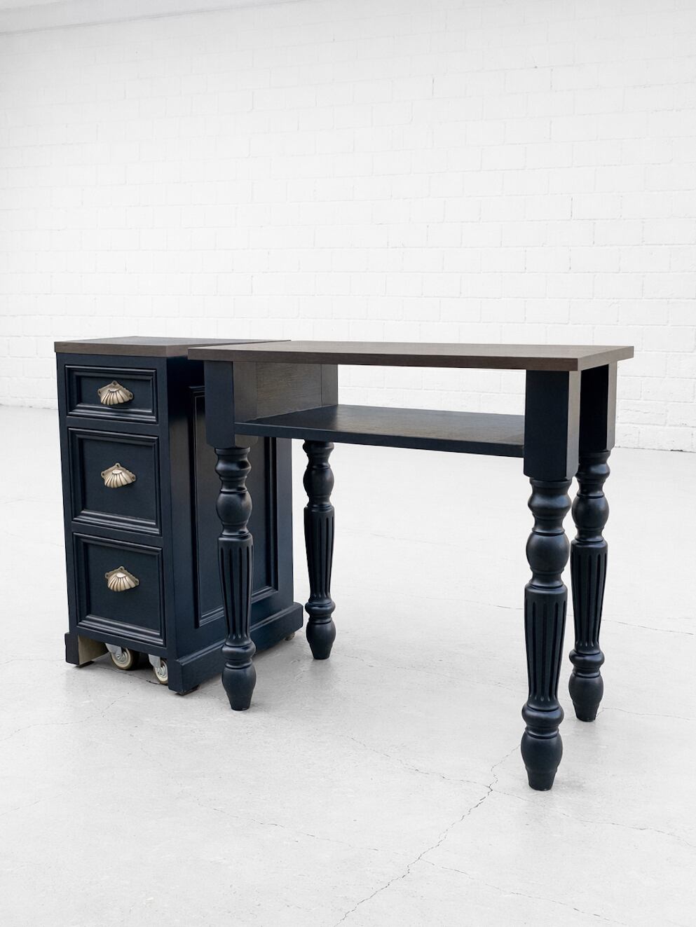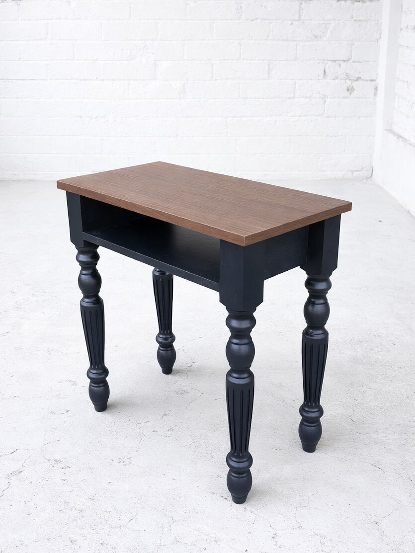 東京のネイルサロンのリューアルオープンに、かわいいネイルテーブルをオーダーメイドさせていただきました。ターンドレッグ(ろくろ脚)とウォールナット木目調のメラミン天板、シックなブラックリリー色でペイントしたネイルデスクです。テーブルのサイズ変更、ワゴンのセット製造など、様々なご要望にお応えします。