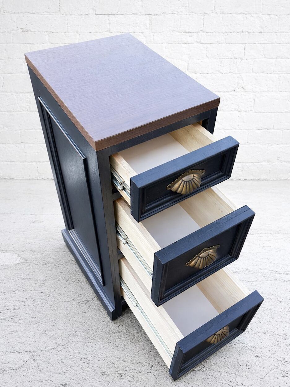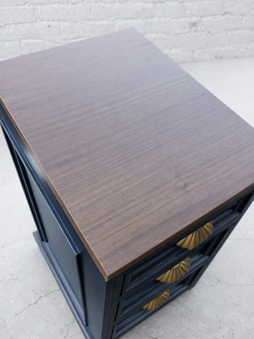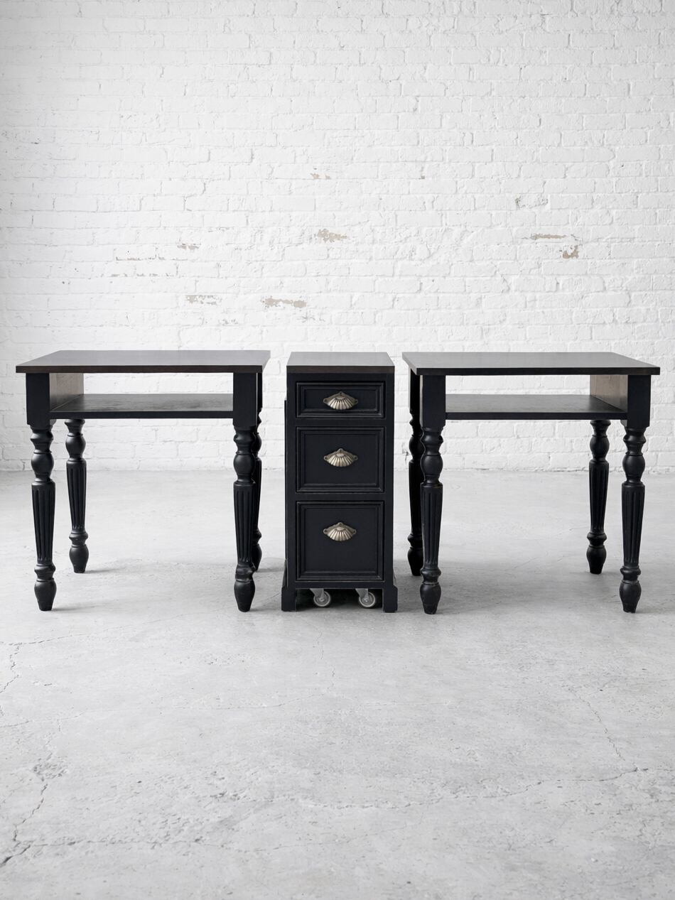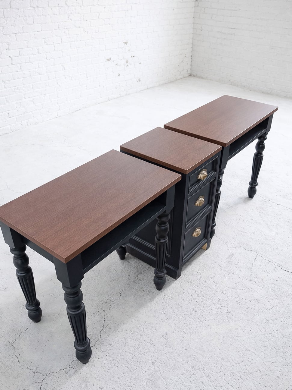 東京のネイルサロンのリューアルオープンに、かわいいネイルテーブルをオーダーメイドさせていただきました。ターンドレッグ(ろくろ脚)とウォールナット木目調のメラミン天板、シックなブラックリリー色でペイントしたネイルデスクです。テーブルのサイズ変更、ワゴンのセット製造など、様々なご要望にお応えします。