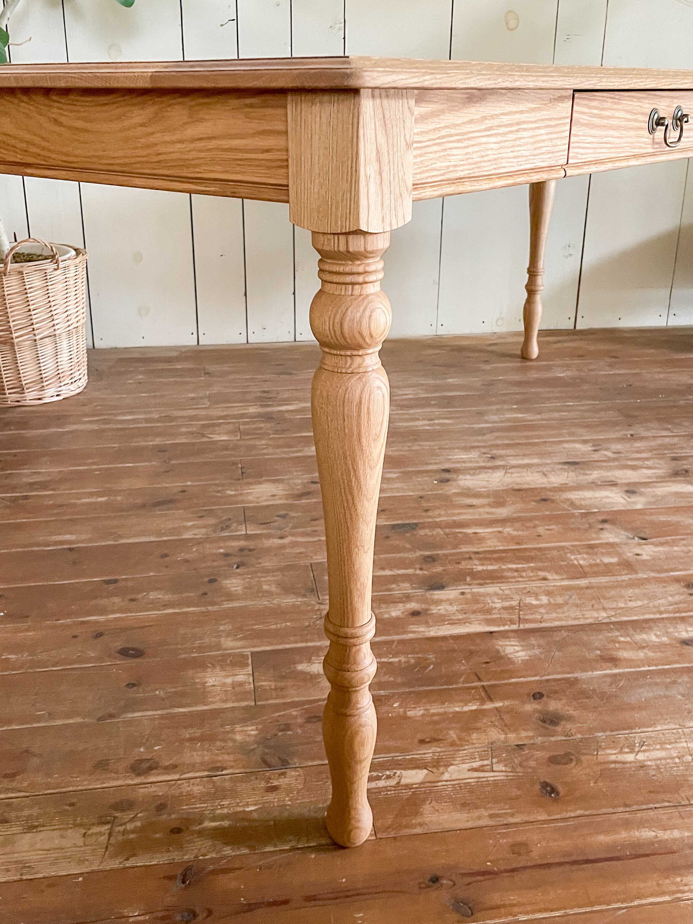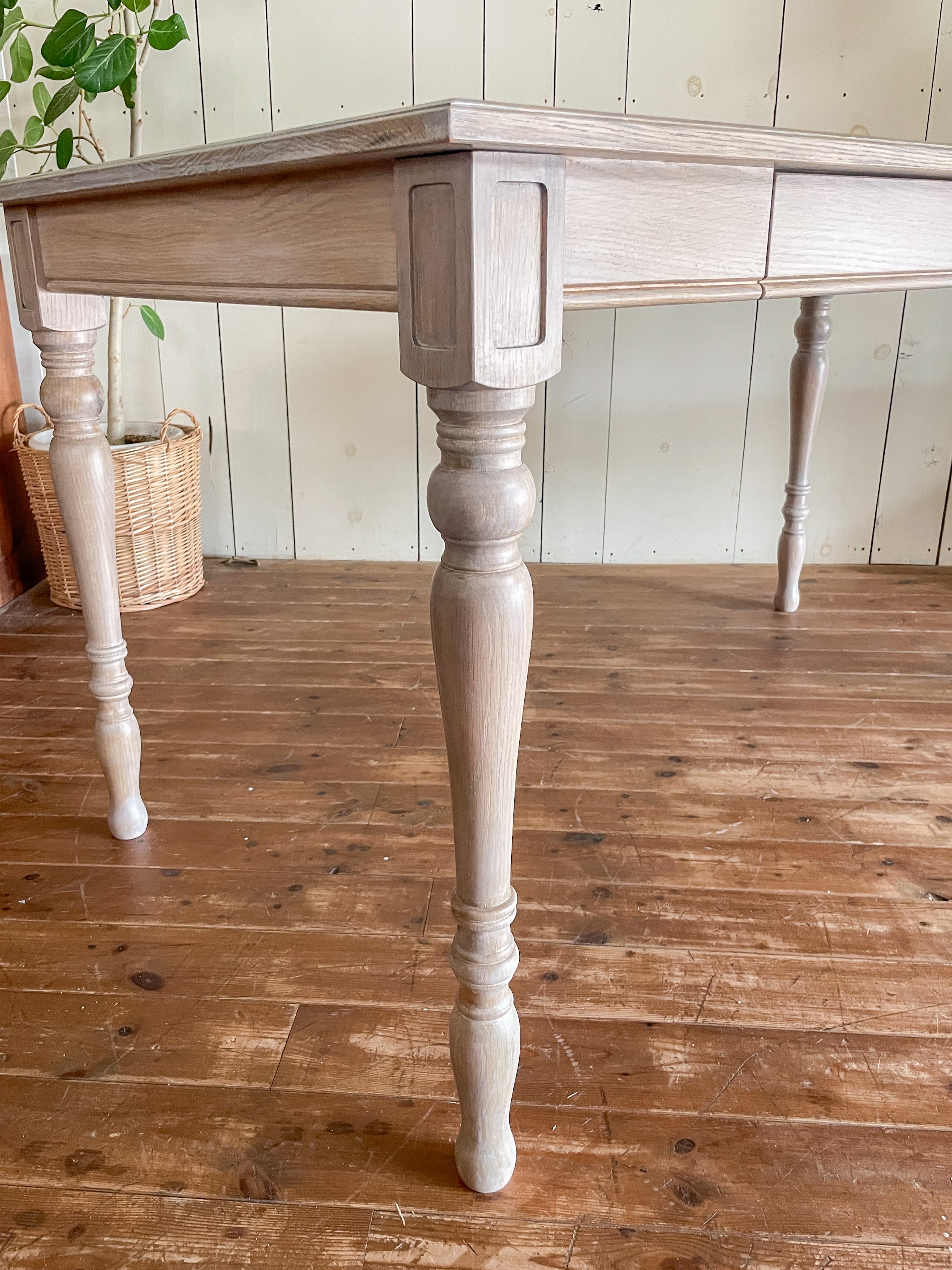ホワイトオークターンドレッグダイニングテーブル “スレンダー”(アンティーク調ろくろ足テーブル) W1400〜2400 4〜8人掛け 引き出し付きダイニングテーブル