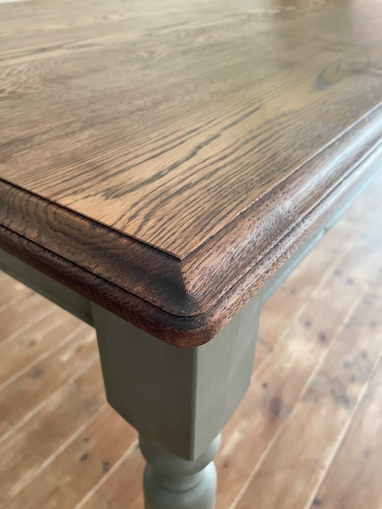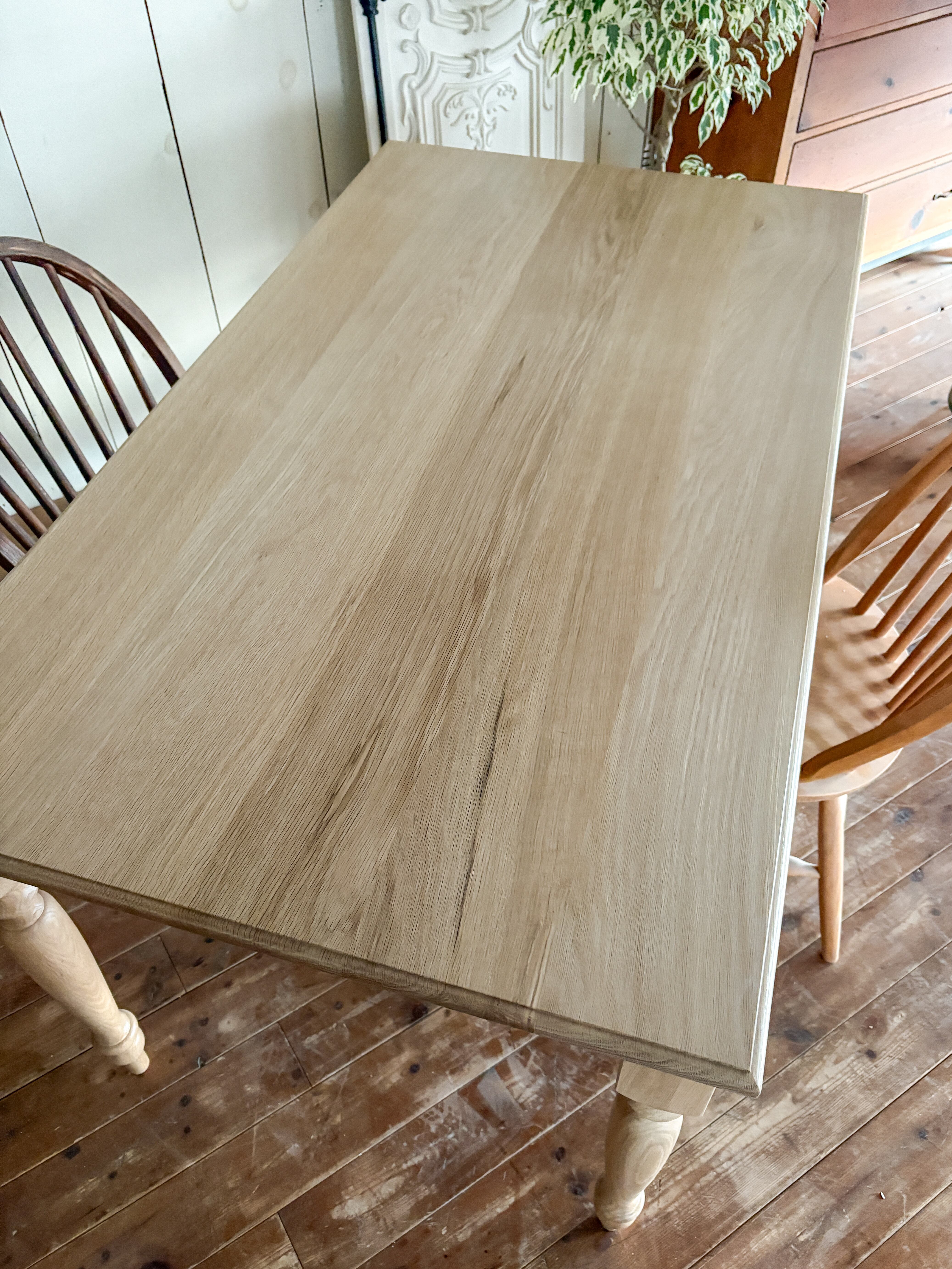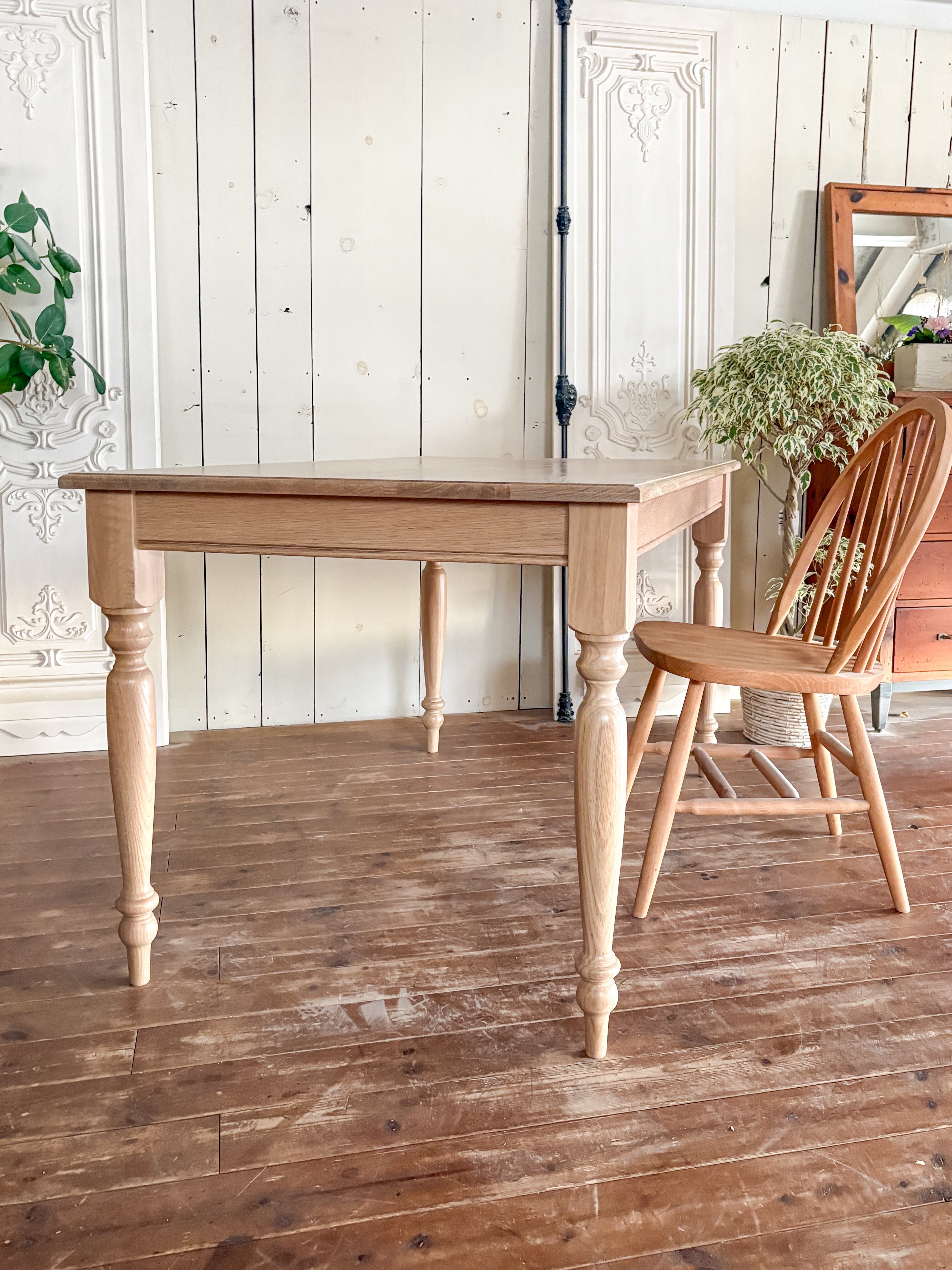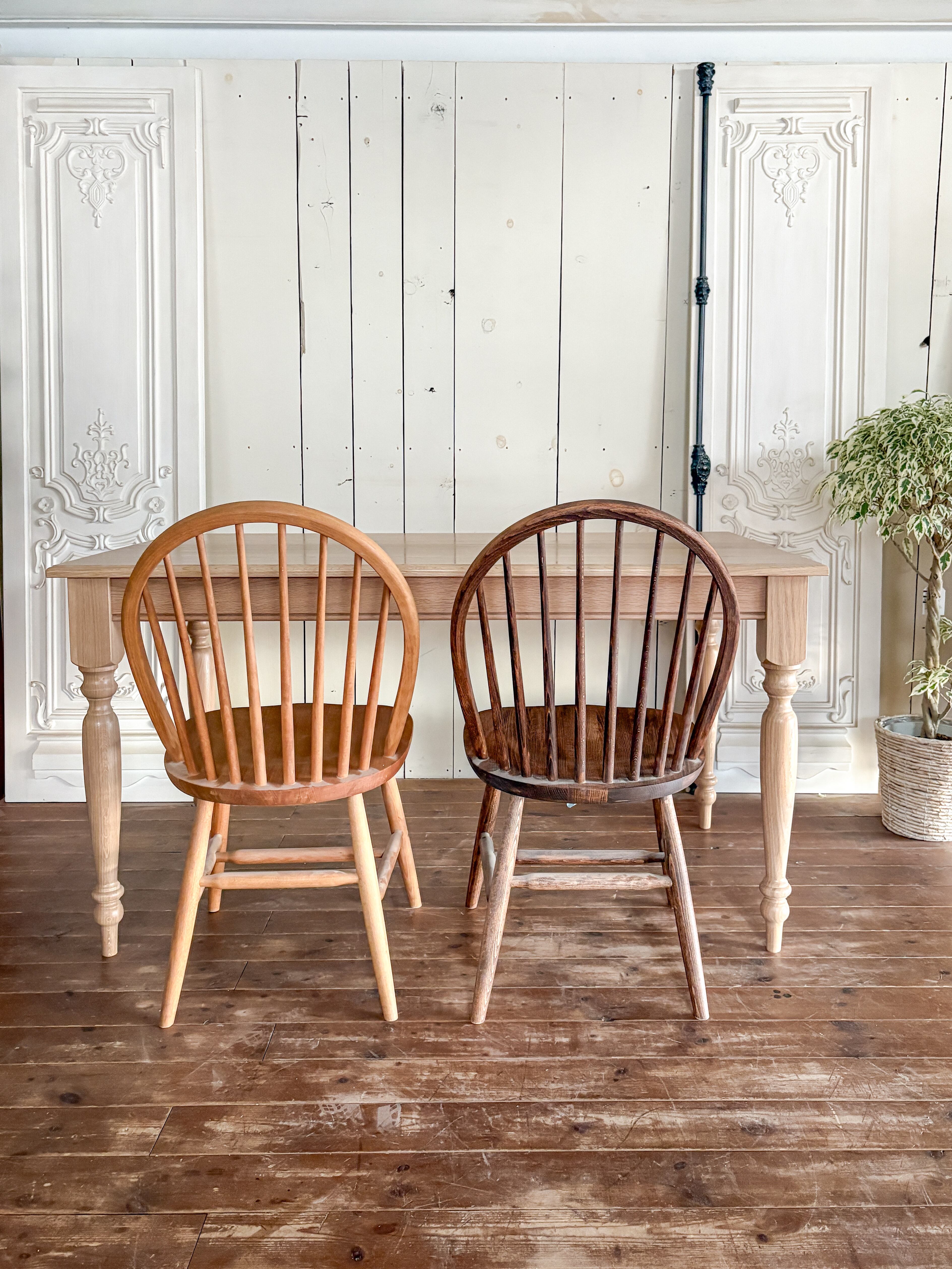 東京都のオーナー様に納品させていただいた、ろくろ足ダイニングテーブル。人気の木材ホワイトオーク無垢材を使って、高級感のある質感と木目を楽しめます。写真はクリア色防水ウレタン仕上げ。カラーやサイズを自由に選べるオーダーメイド家具の専門店です。輸入住宅や海外インテリア、アンティークインテリアによく似合うダイニングテーブルの製作はグレイスファニチャーにお任せ下さい。