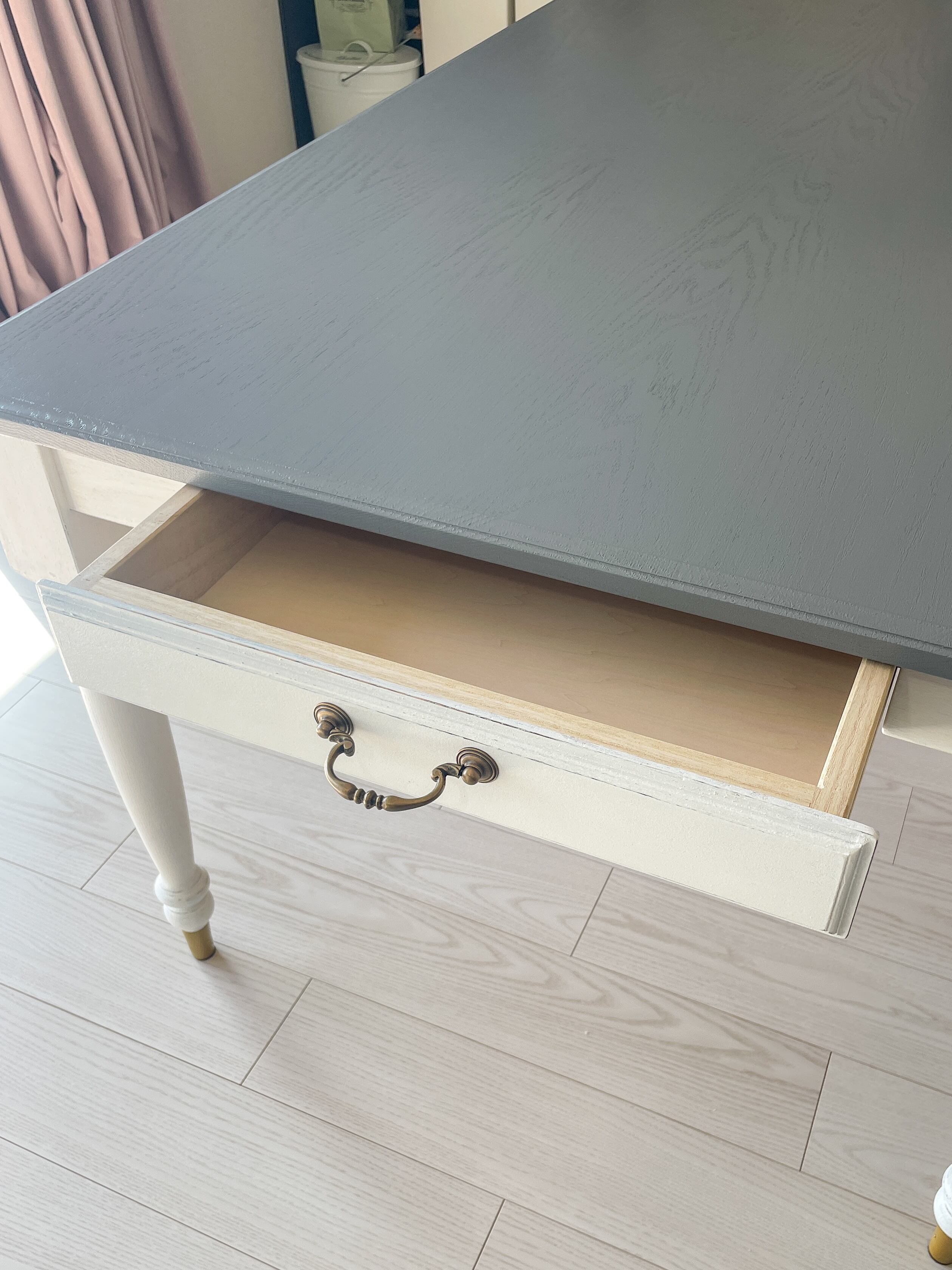 写真はW1400×D800mm、ミニマムの4人がけサイズです。ご家庭向け、また飲食店やアパレルのディスプレイ平台にも人気で、最大2400までサイズオーダー可能です。お好みで引出しつけたりることも可能です。真鍮取っ手は100種類以上のデザインから選べます。 カトラリーや雑多な生活雑貨を片付けられる便利な収納に。