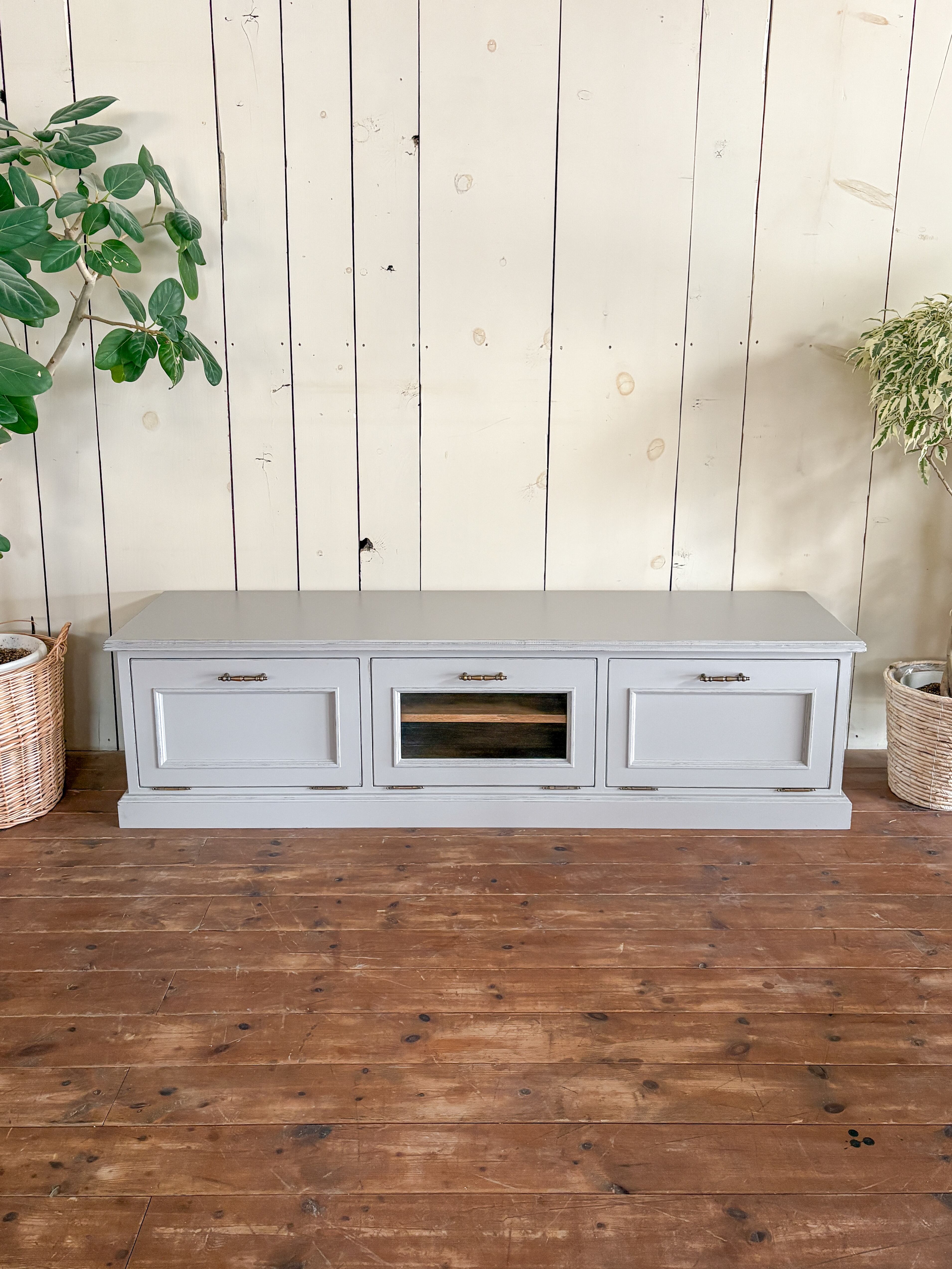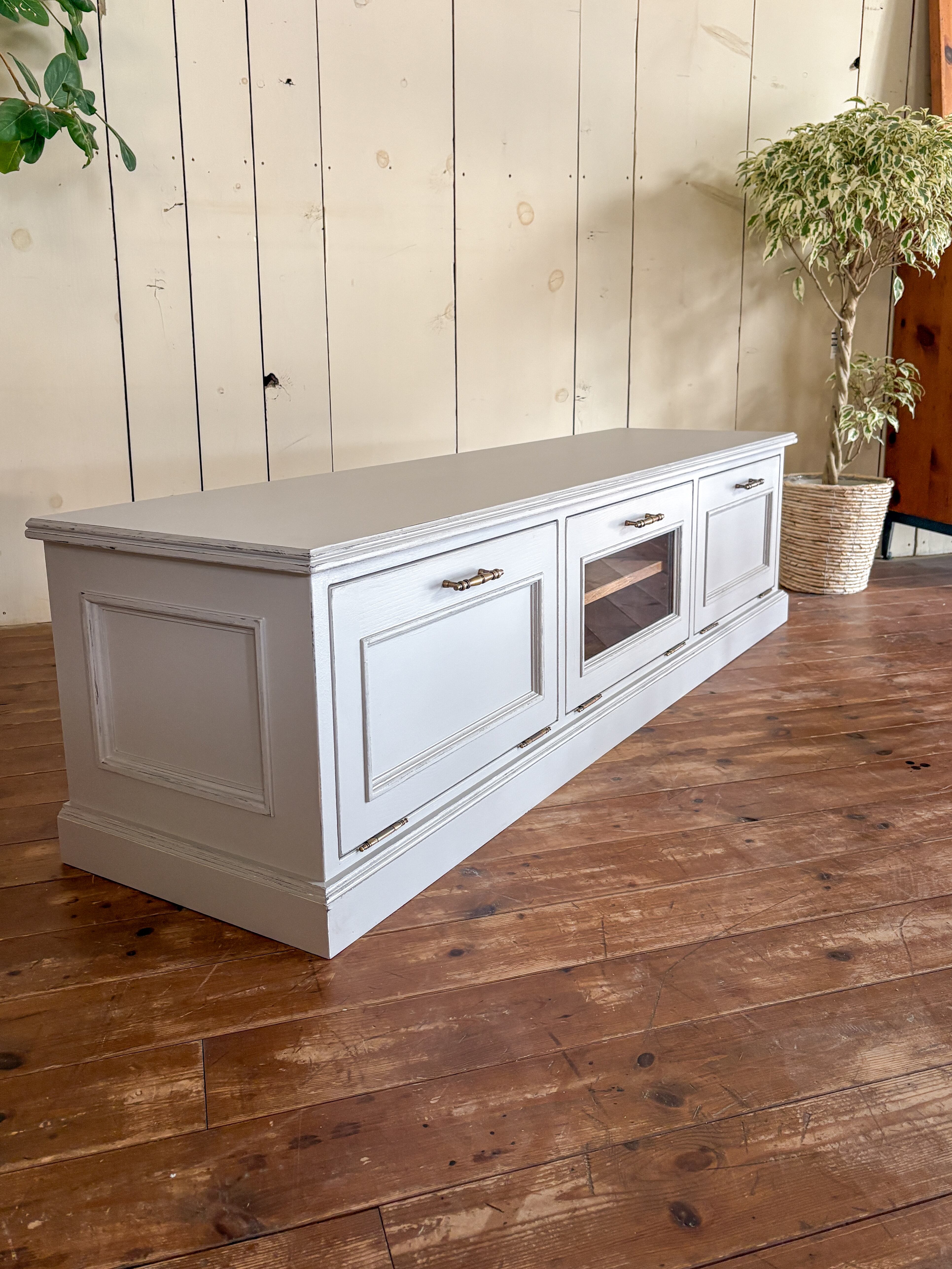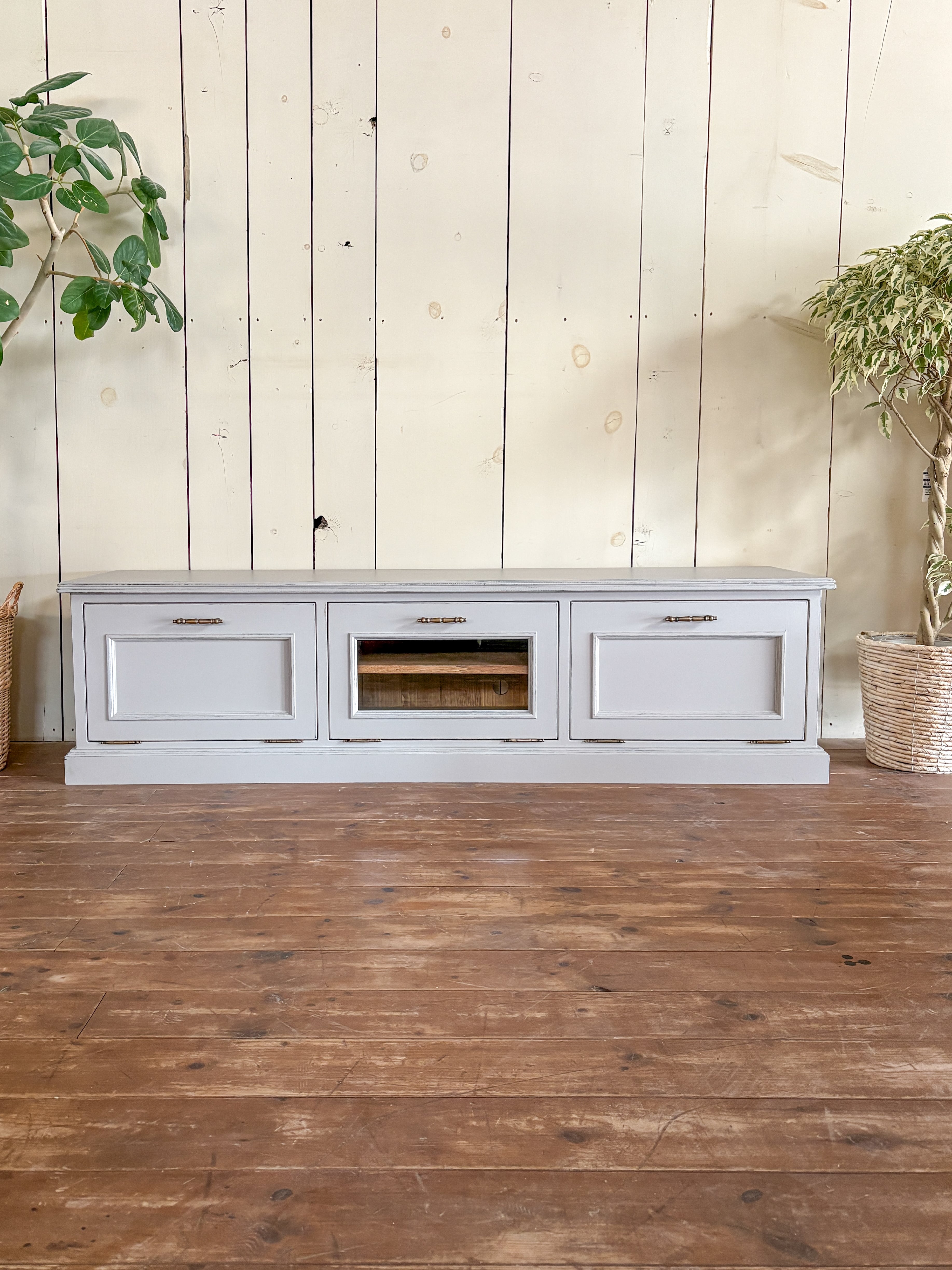 神奈川県のオーナー様に製作させていただいたエドワーディアンスタイルのテレビボード。シンプルでいて装飾性もあるローボードです。輸入住宅や海外インテリアによく似合うテレビボードのオーダメイドしております。ワイド3000mmまで製作実績があります。市販されていないサイズやデザインの家具製作は、グレイスファニチャーにお任せ下さい。