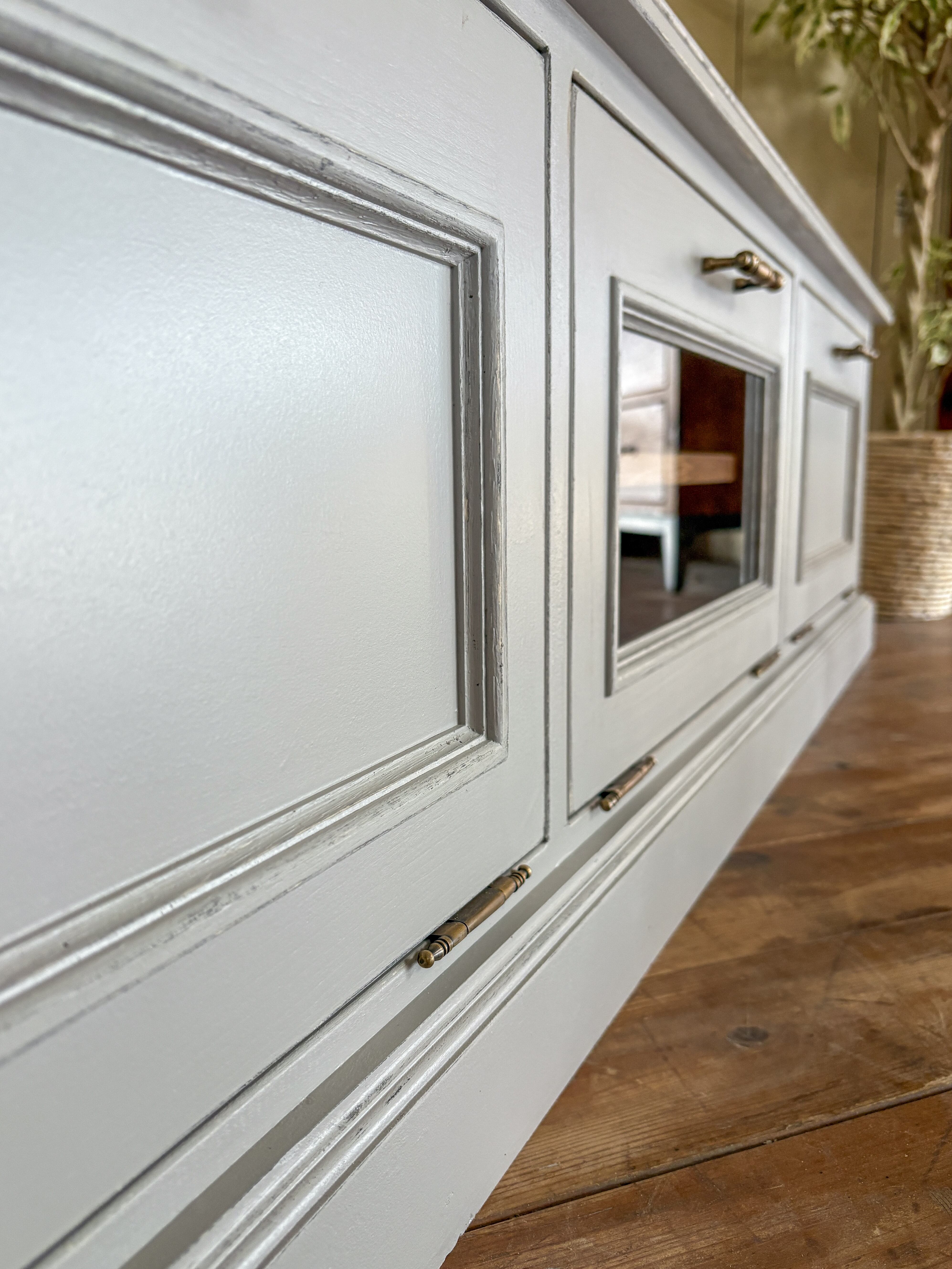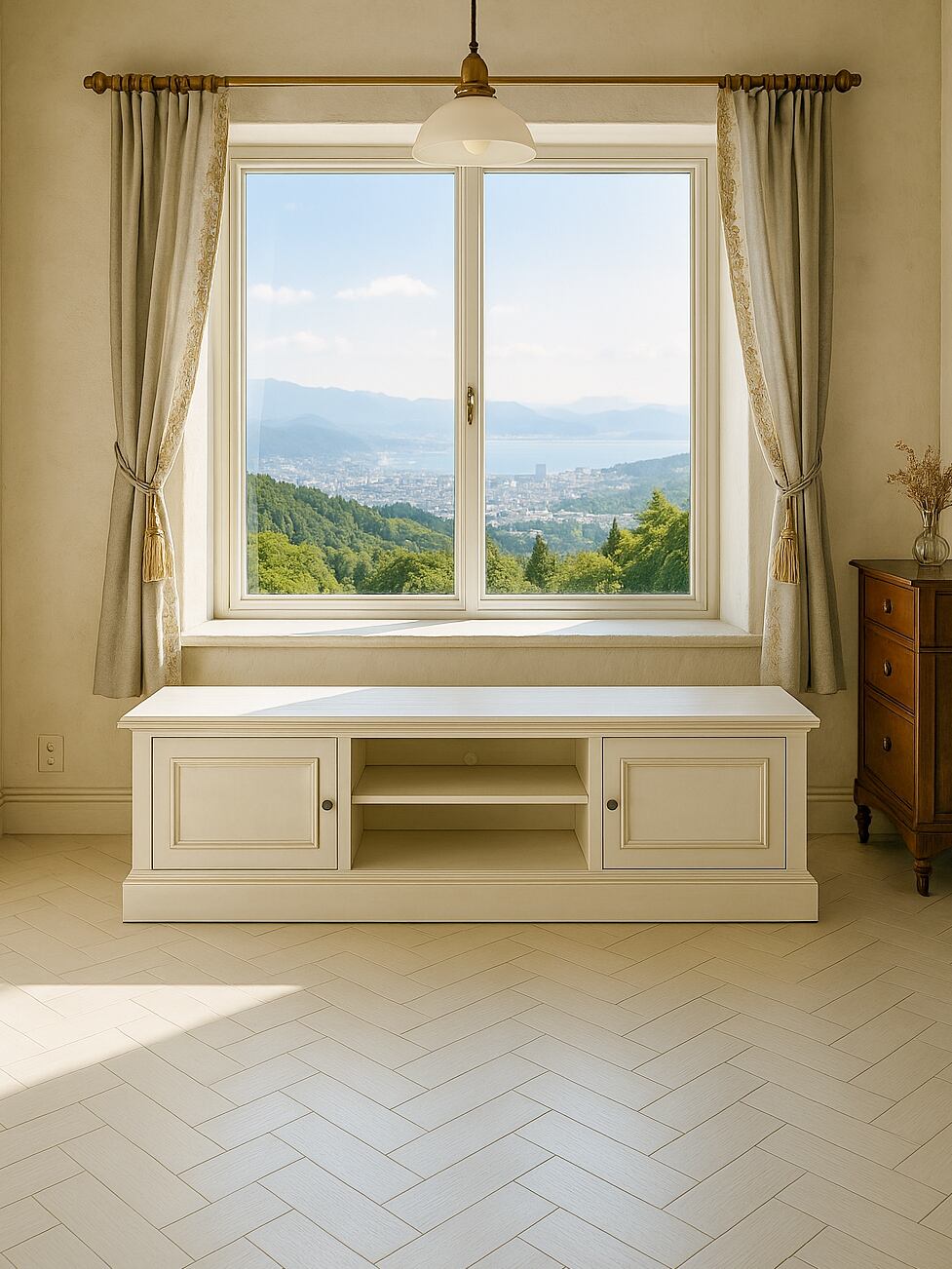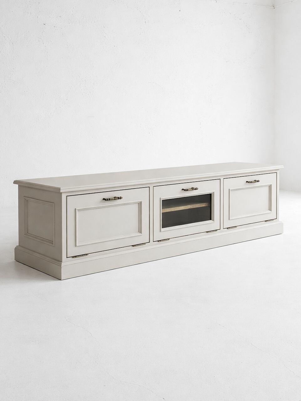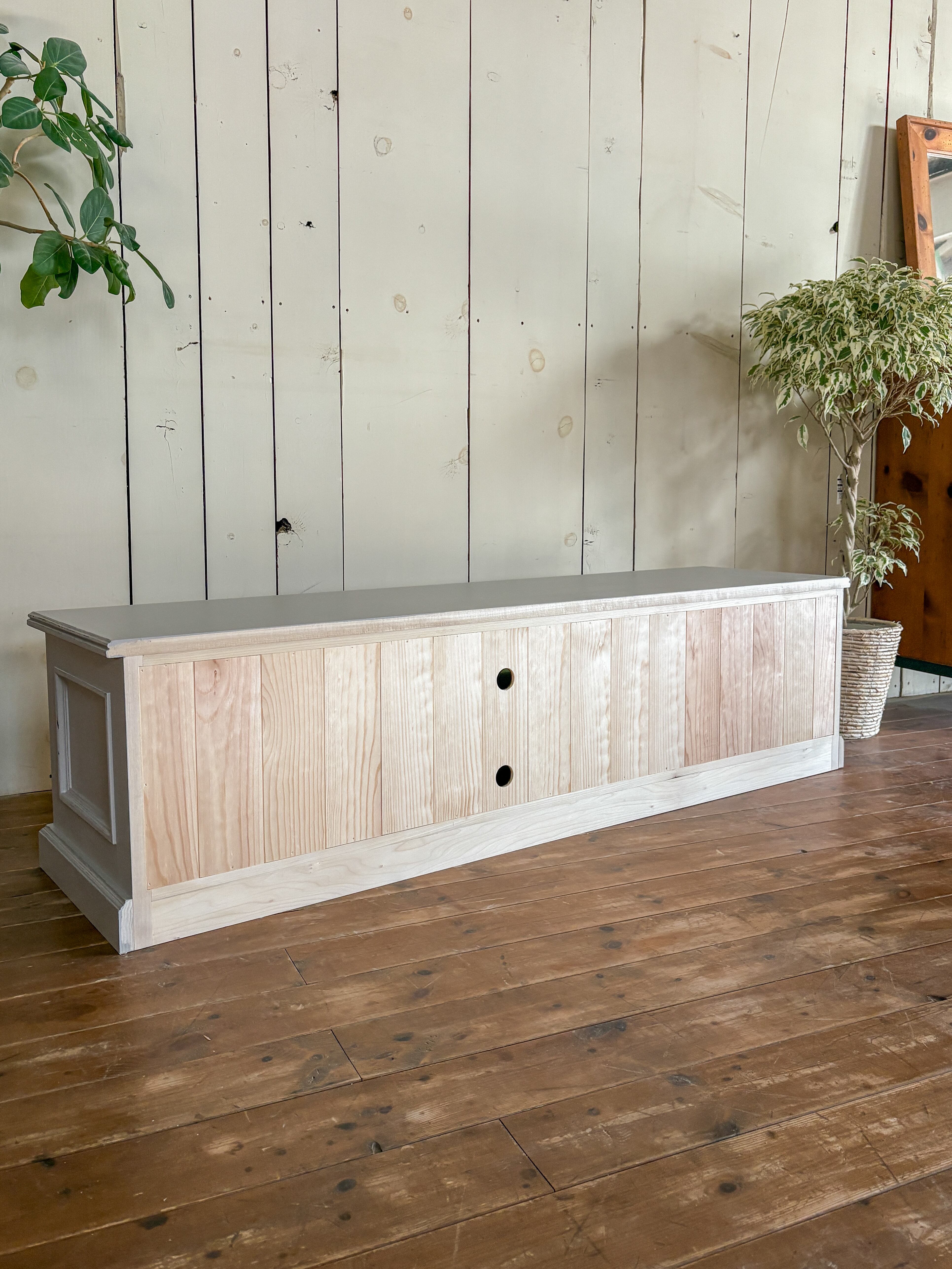 神奈川県のオーナー様に製作させていただいたエドワーディアンスタイルのテレビボード。シンプルでいて装飾性もあるローボードです。輸入住宅や海外インテリアによく似合うテレビボードのオーダメイドしております。ワイド3000mmまで製作実績があります。市販されていないサイズやデザインの家具製作は、グレイスファニチャーにお任せ下さい。