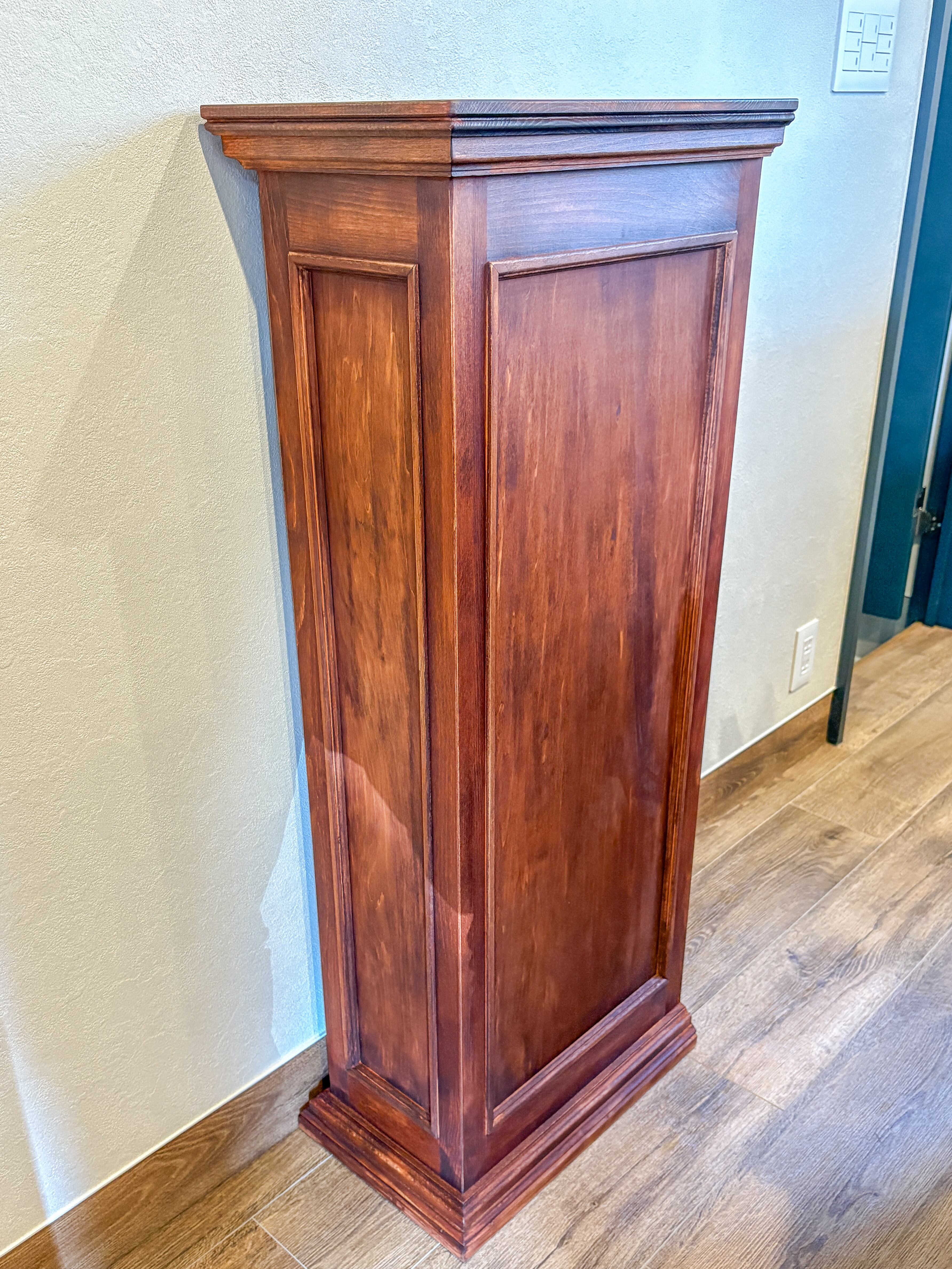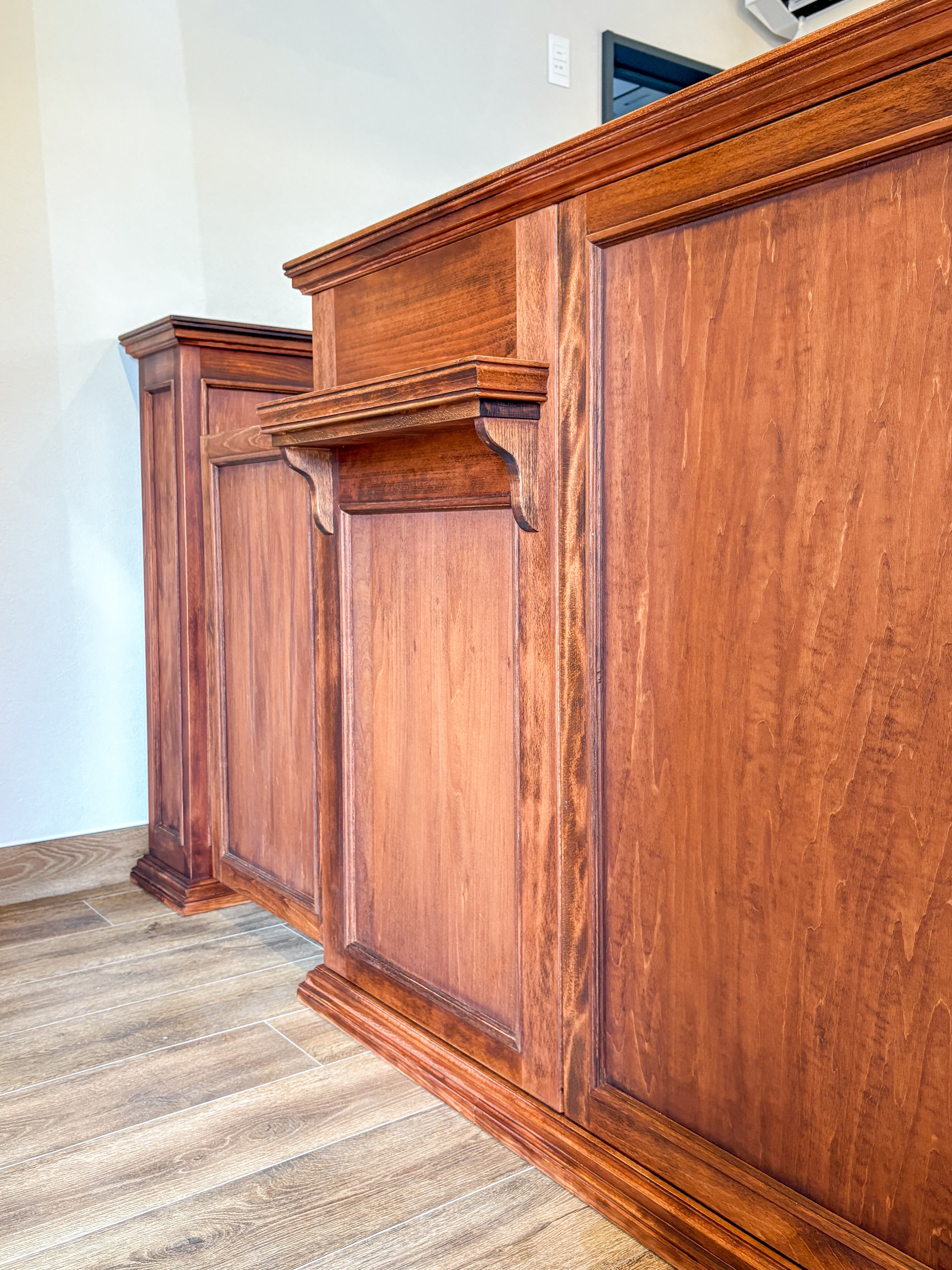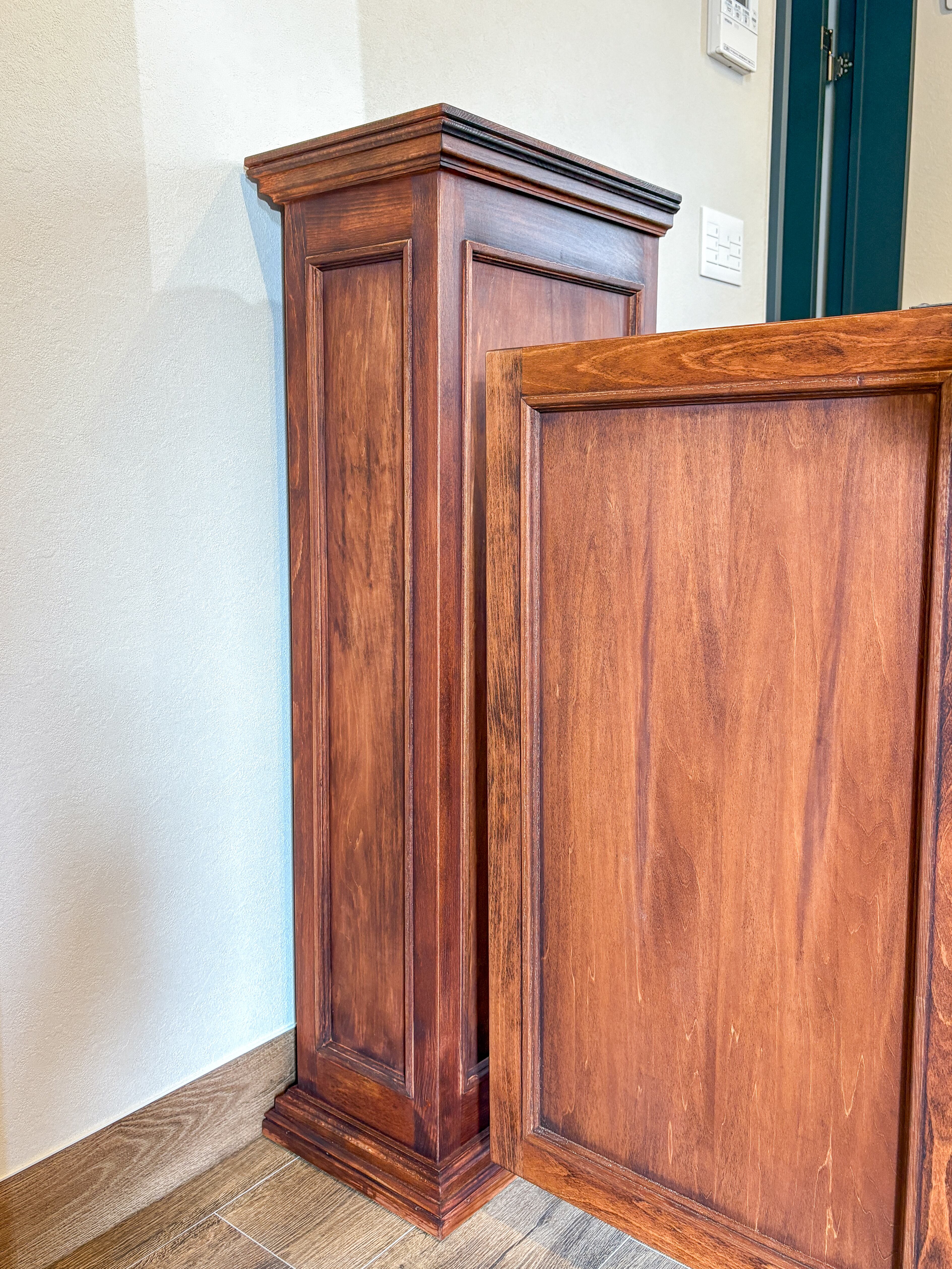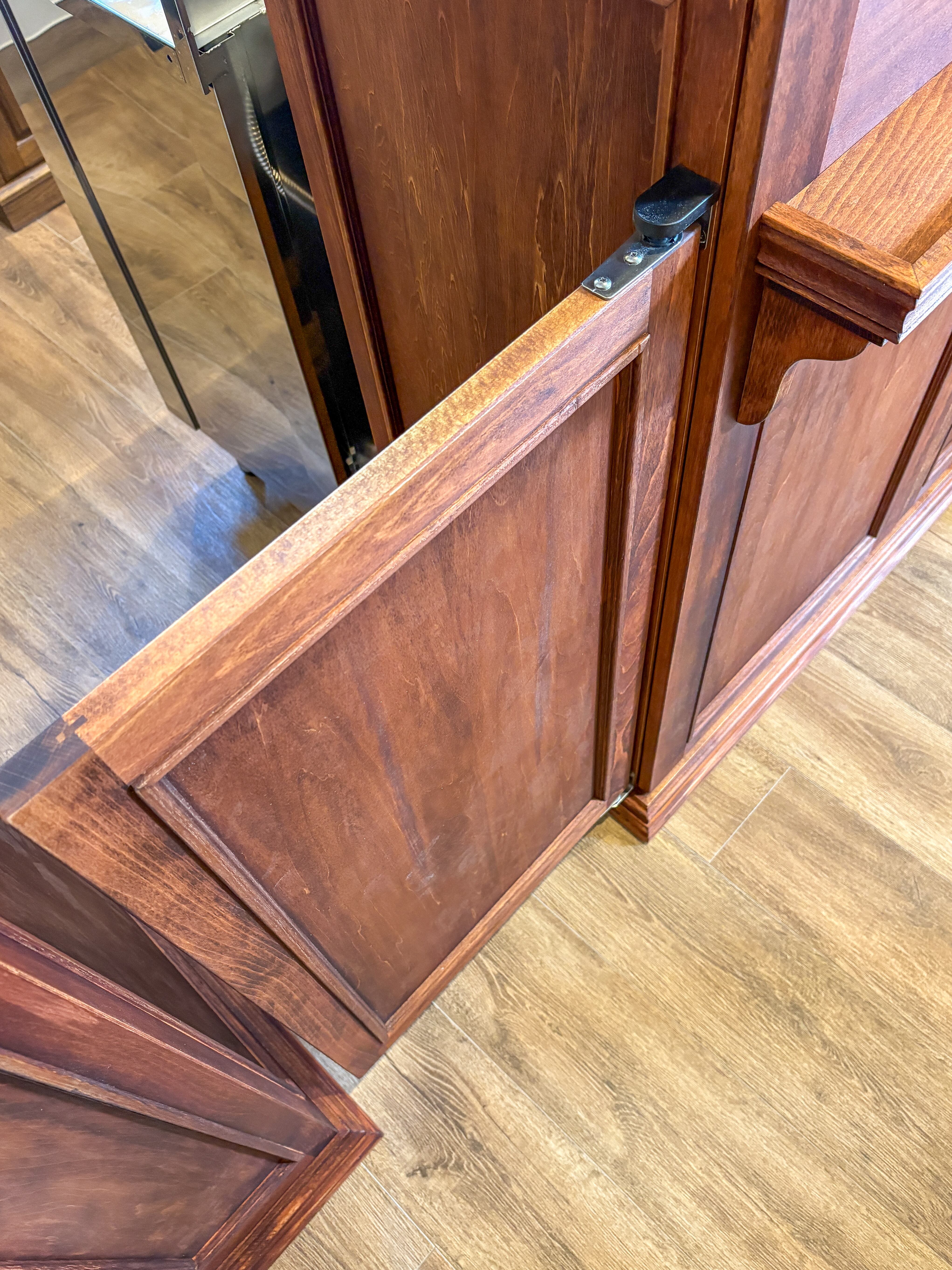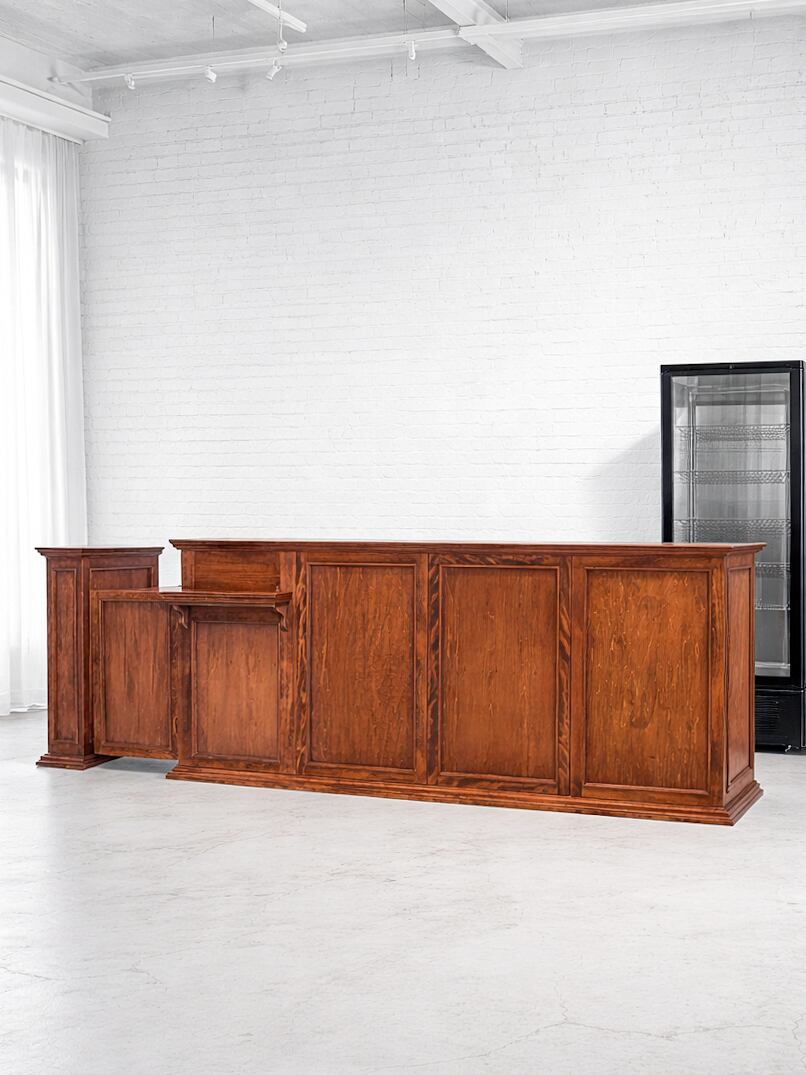 写真はホワイトビーチ材製、お手持ちのオーク材に似せた「特注色」。ウッド8色、ペンキ13色、その他日塗工色番でのカラーオーダーを承ります。熟練の家具職人が1台1台手作りで製造します。天然木を使った丈夫なつくりで、製造実績は3500件以上。日本全国のお店に、家具専門デリバリーで安心安全お届けいたします。お気軽にご相談下さいませ。
