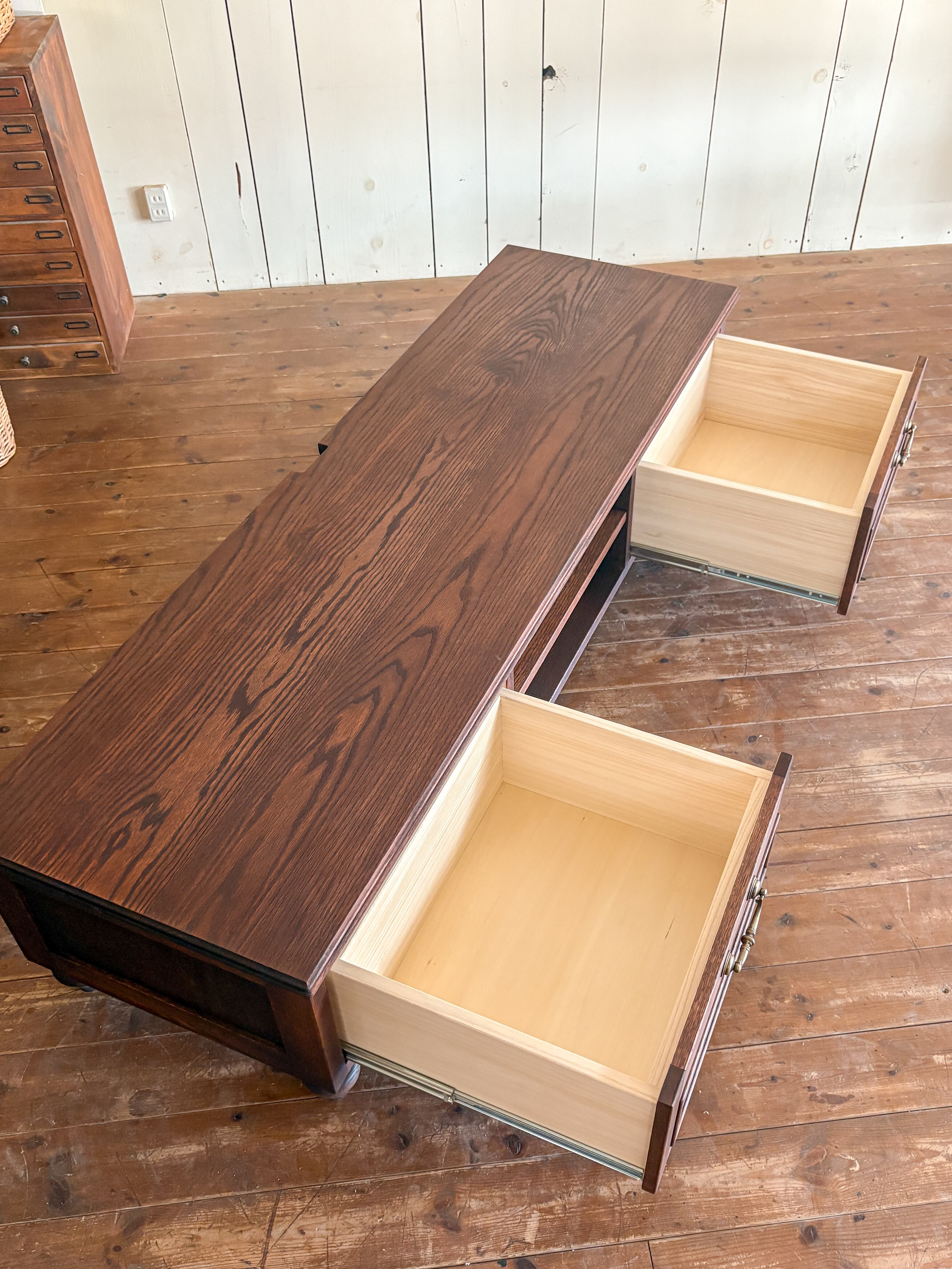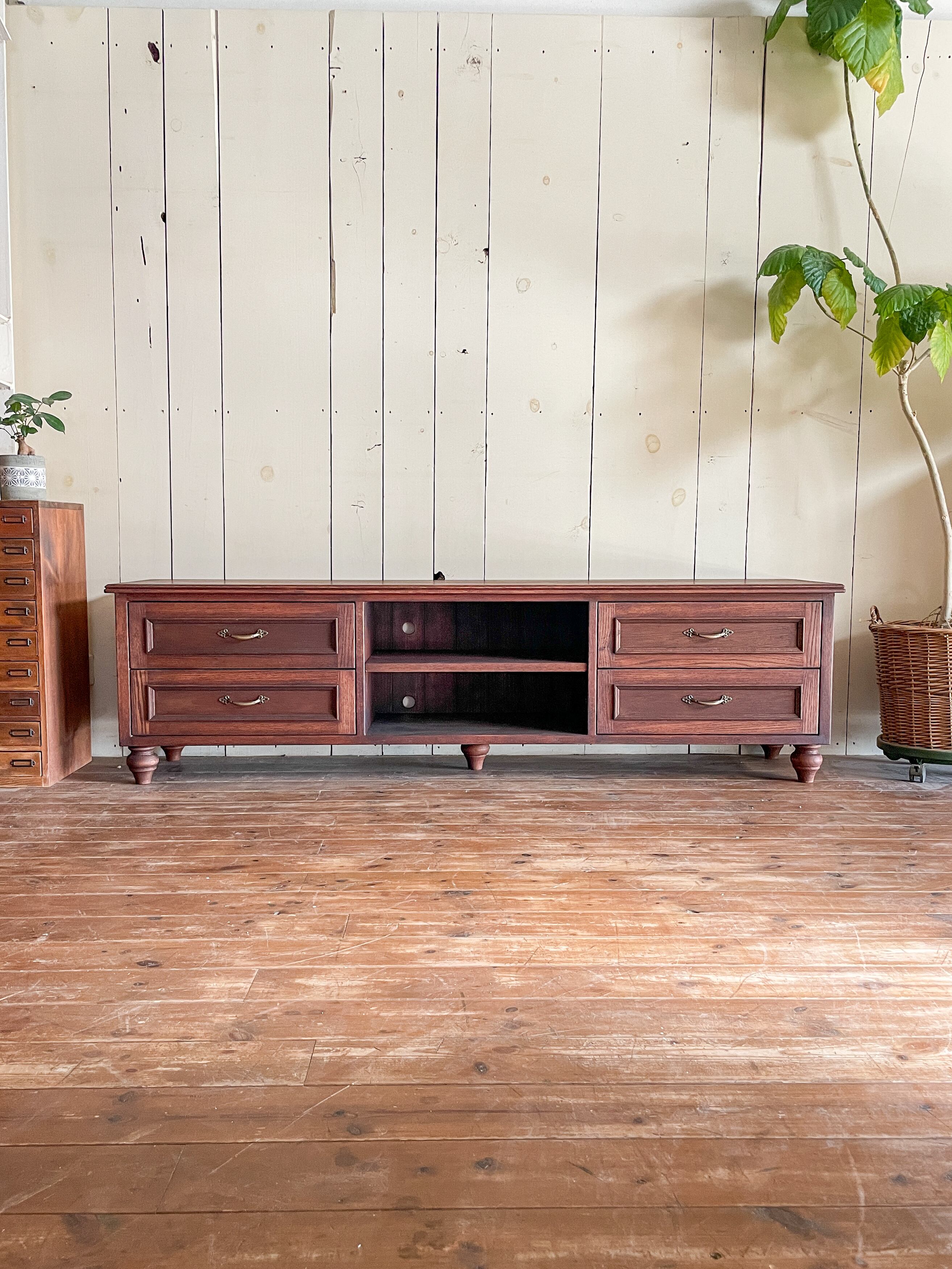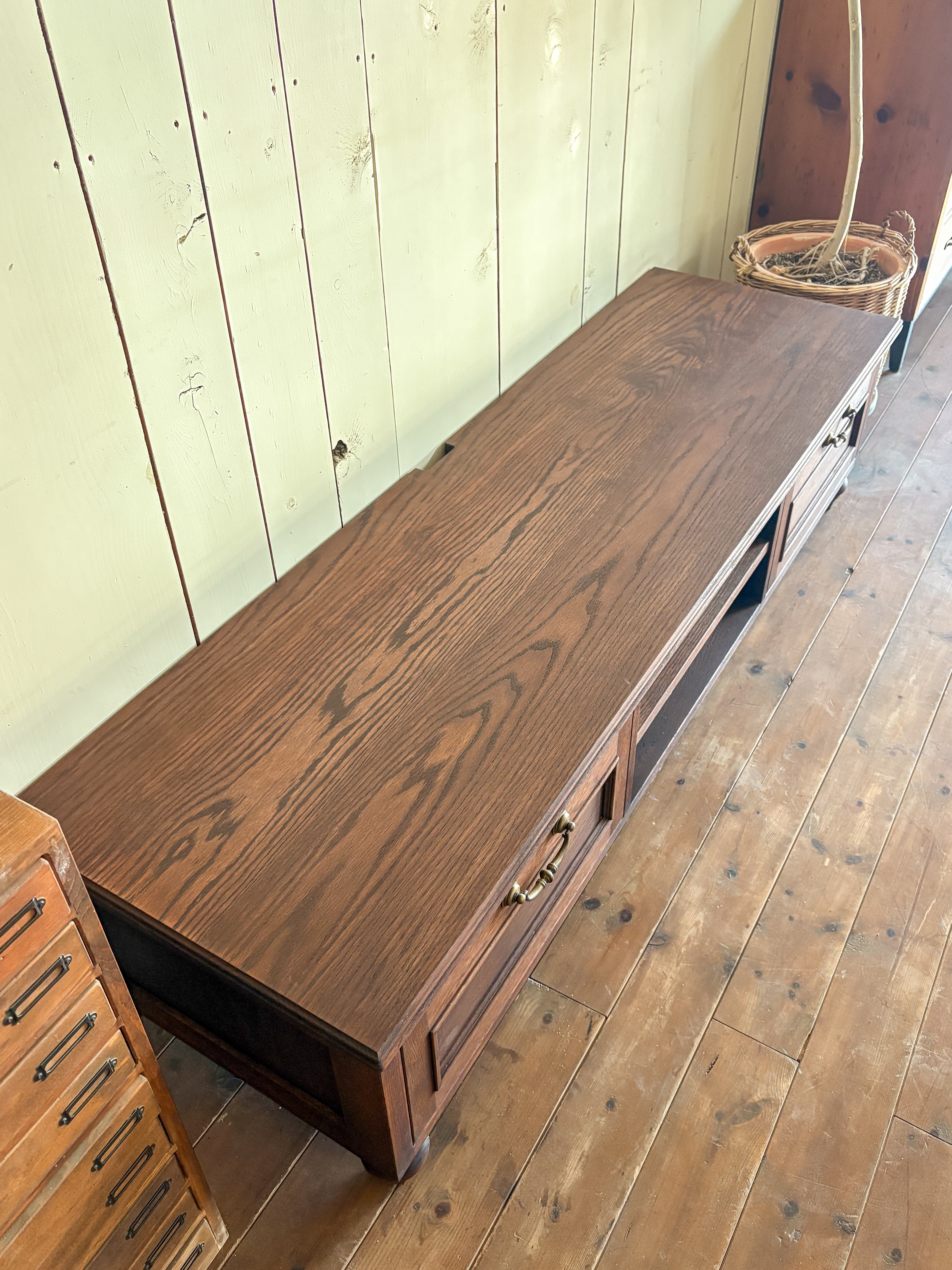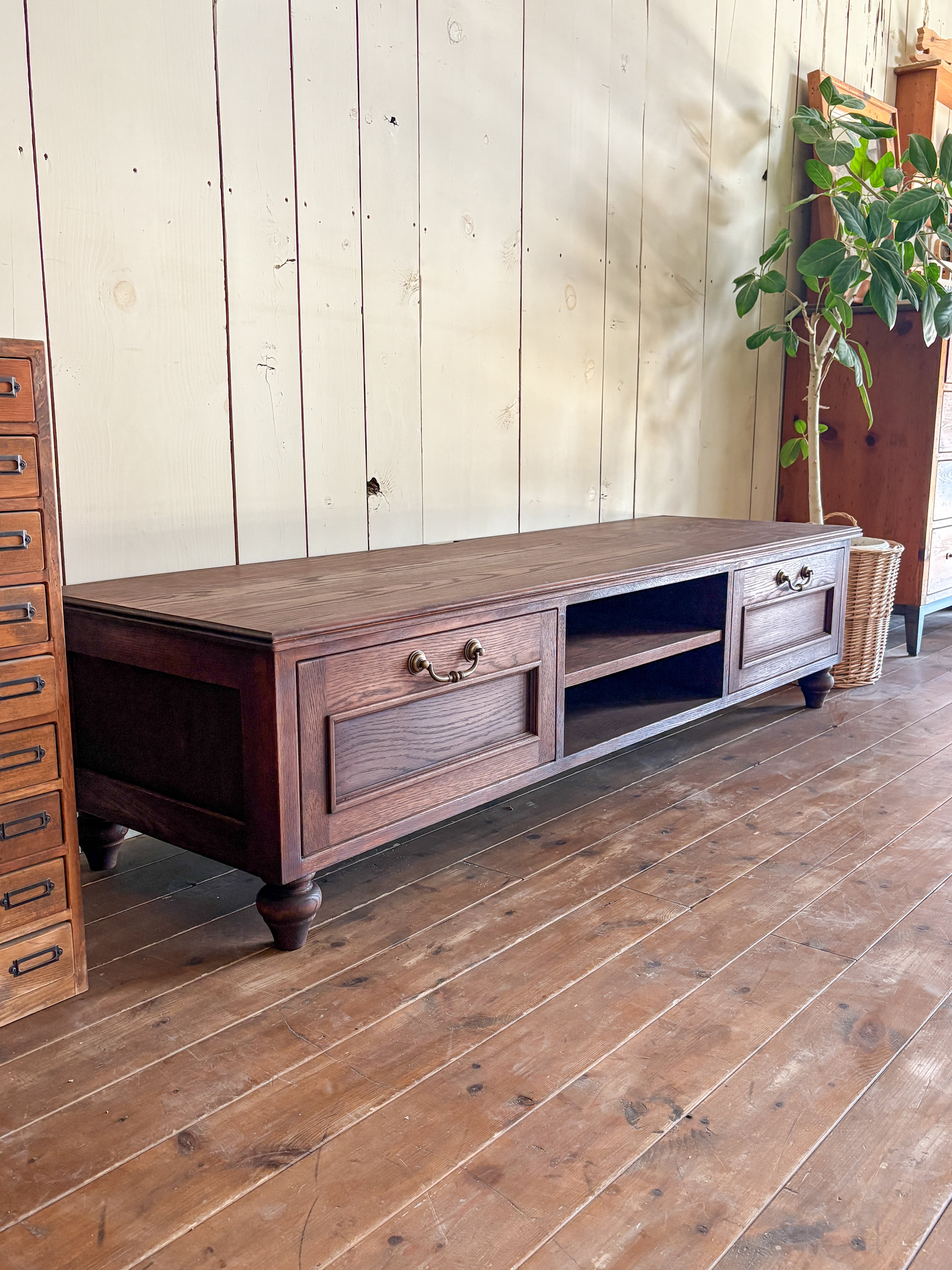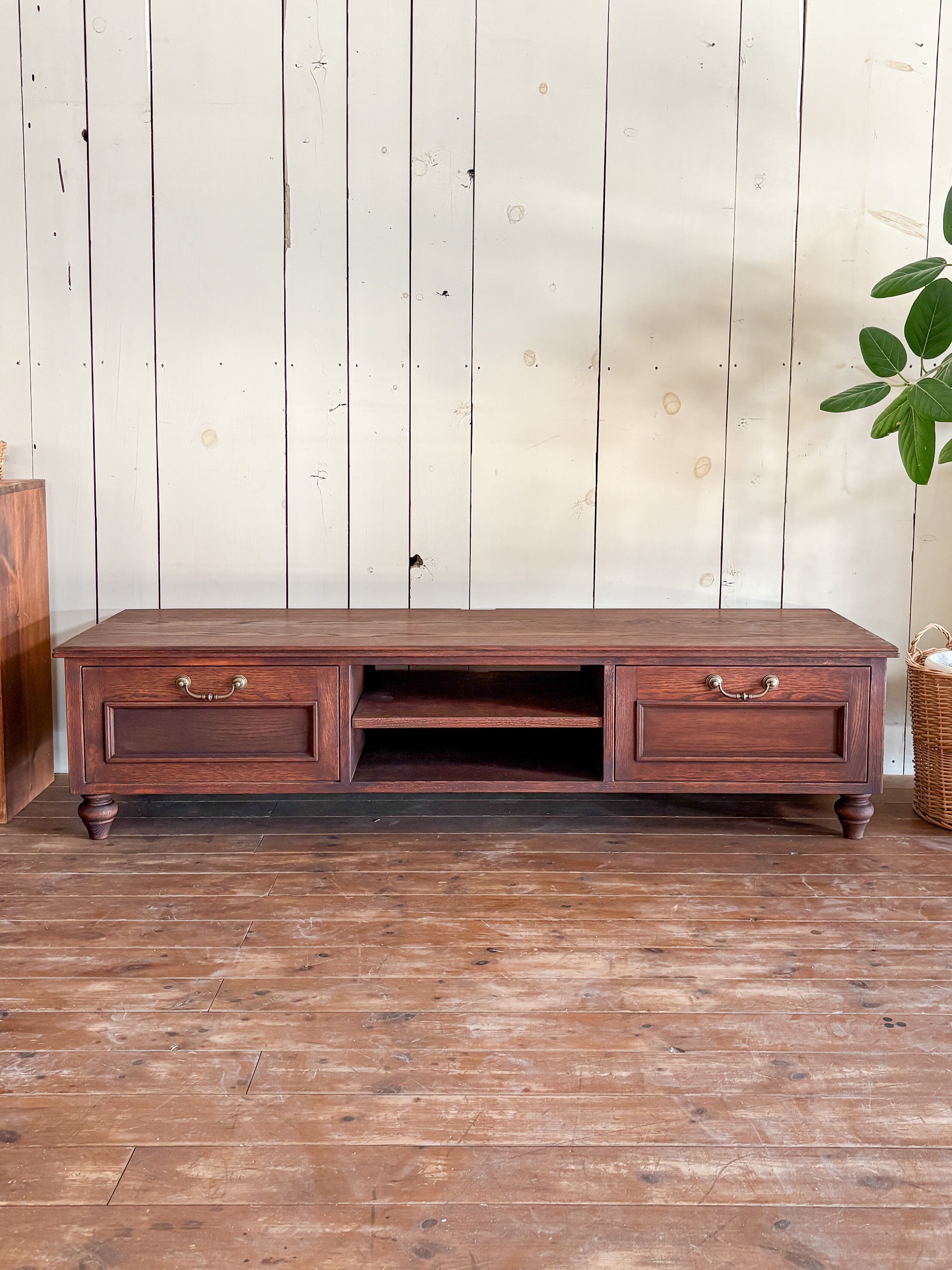 レッドオーク材テレビボード 輸入住宅向けテレビ台 (アンティーク調オーダーメイドTV台)W1500〜1800