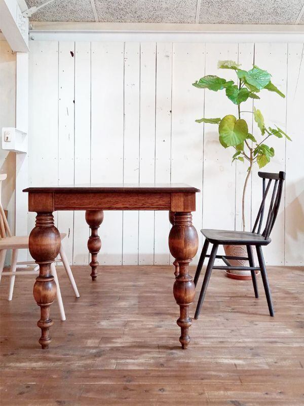店舗のディスプレイや応接テーブルに、眩しいくらいに存在感のある極太のろくろ足のターンドレッグダイニングテーブルです。唯一無二、特別感のあるデザインで、インテリアの主役になるテーブルです。細かなサイズオーダー、カラーオーダー対応いたします。無垢の木材を使った丈夫で重厚なダイニングテーブルをお探しの方は是非ご覧ください。