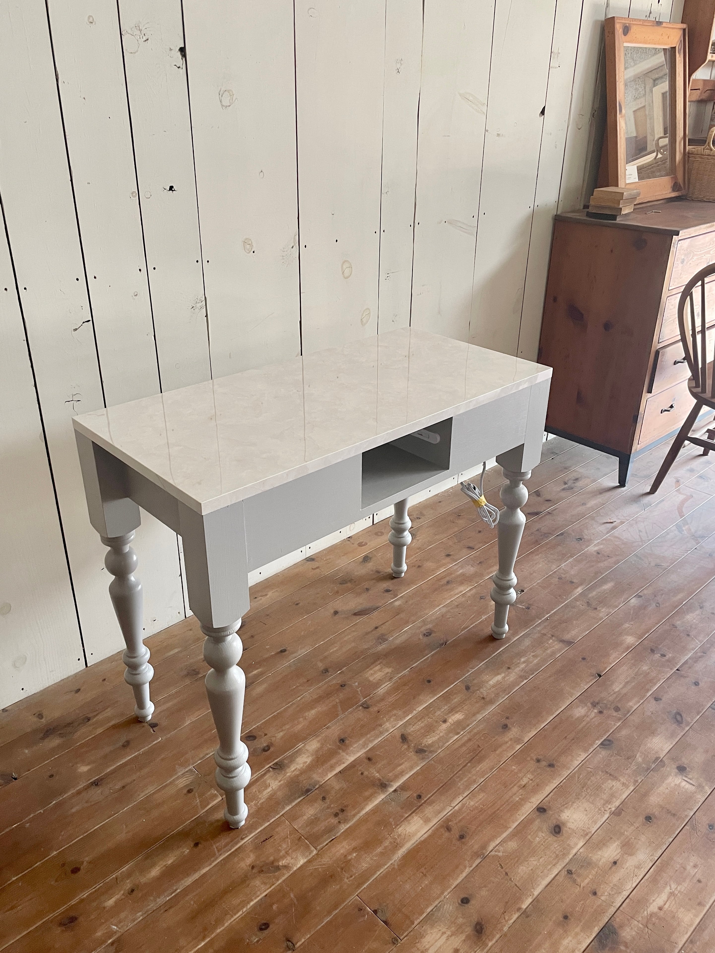 大理石天板(メラミン)のネイルテーブルはアセトンにも対応しています。参考写真は石目が穏やかで優しい色目の大理石。色々な柄・色から選べます。ネイルサロンのオープンに合わせた店舗家具のオーダーメイド、お気軽にご相談下さい。