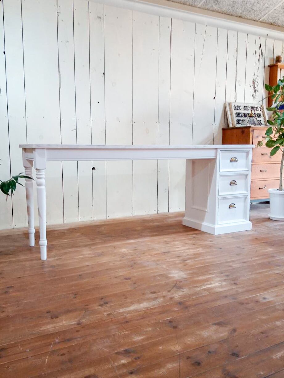 オープンするネイルサロンさんに、かわいいネイルテーブルを製作させていただきました。引出し収納付き、ターンドレッグ(ろくろ足)のアンティーク風ネイルデスクです。大理石柄のメラミン天板は汚れに強くアセントにも耐久性があります。柄は基本4種類をご用意、お店の内装に合わせて品番指定も可能です。