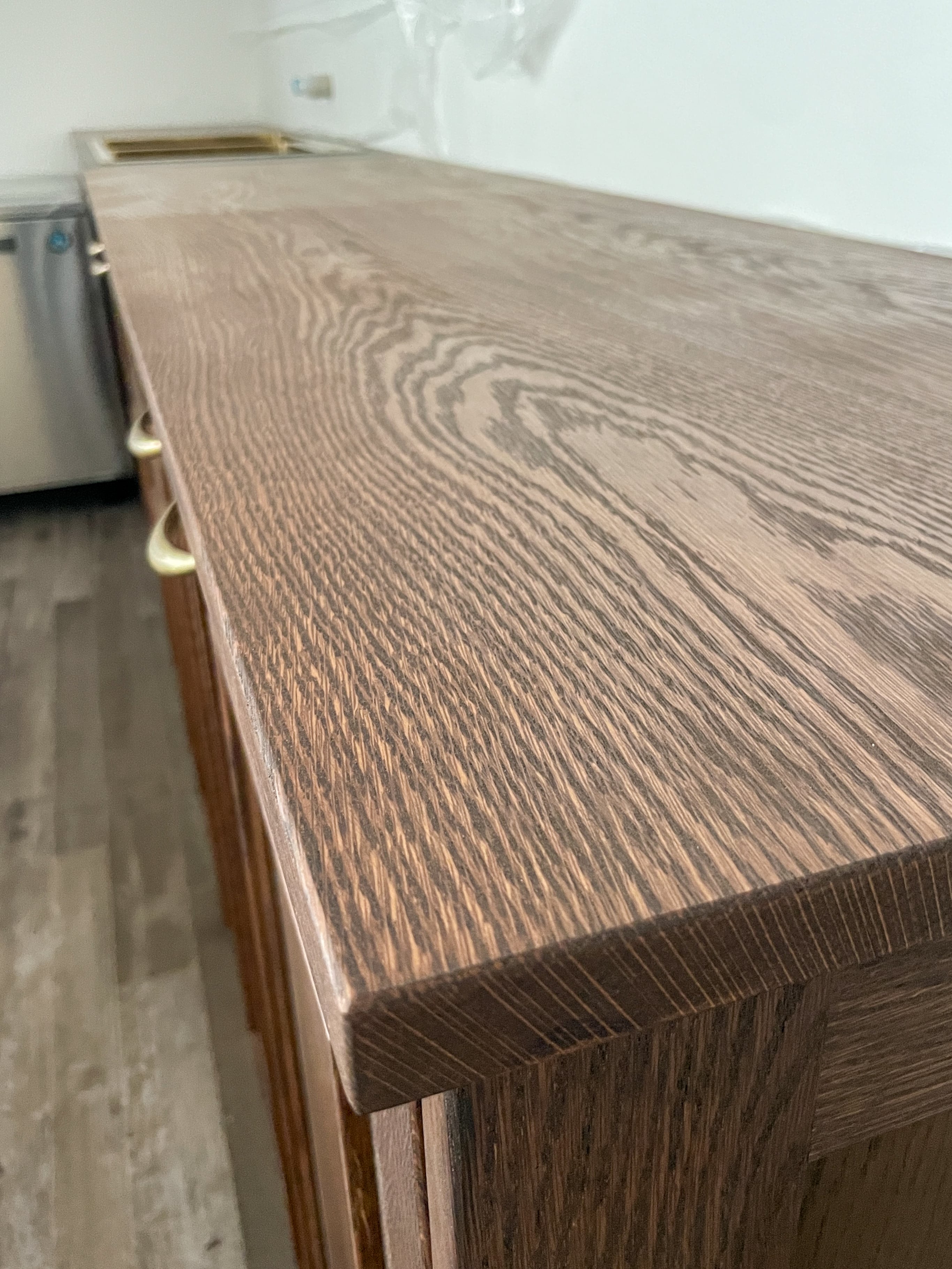 手洗いシンク埋込キッチンバック収納カウンター109 (ホワイトオーク無垢材・バックシンク)W3300 オーダーメイド家具