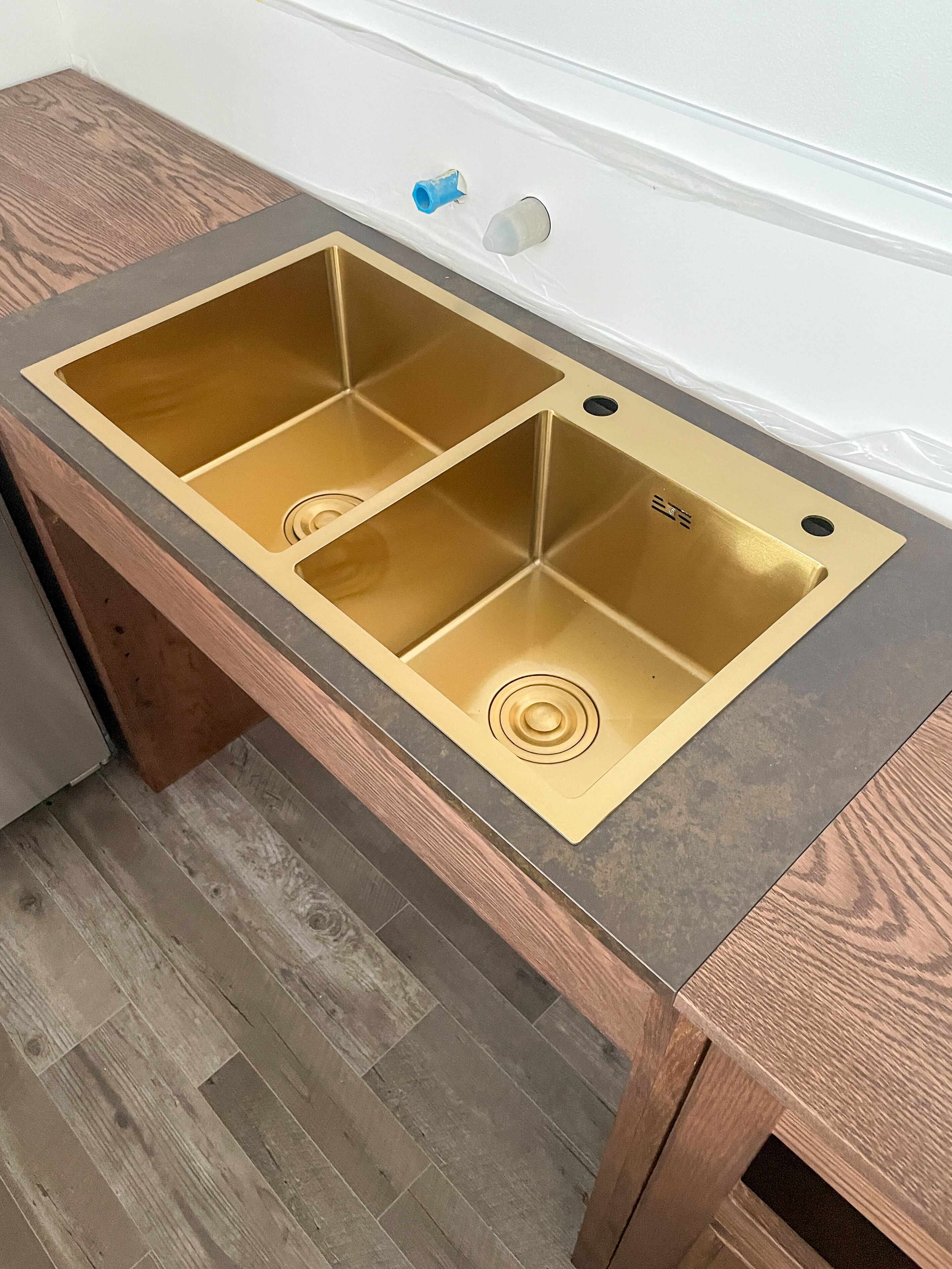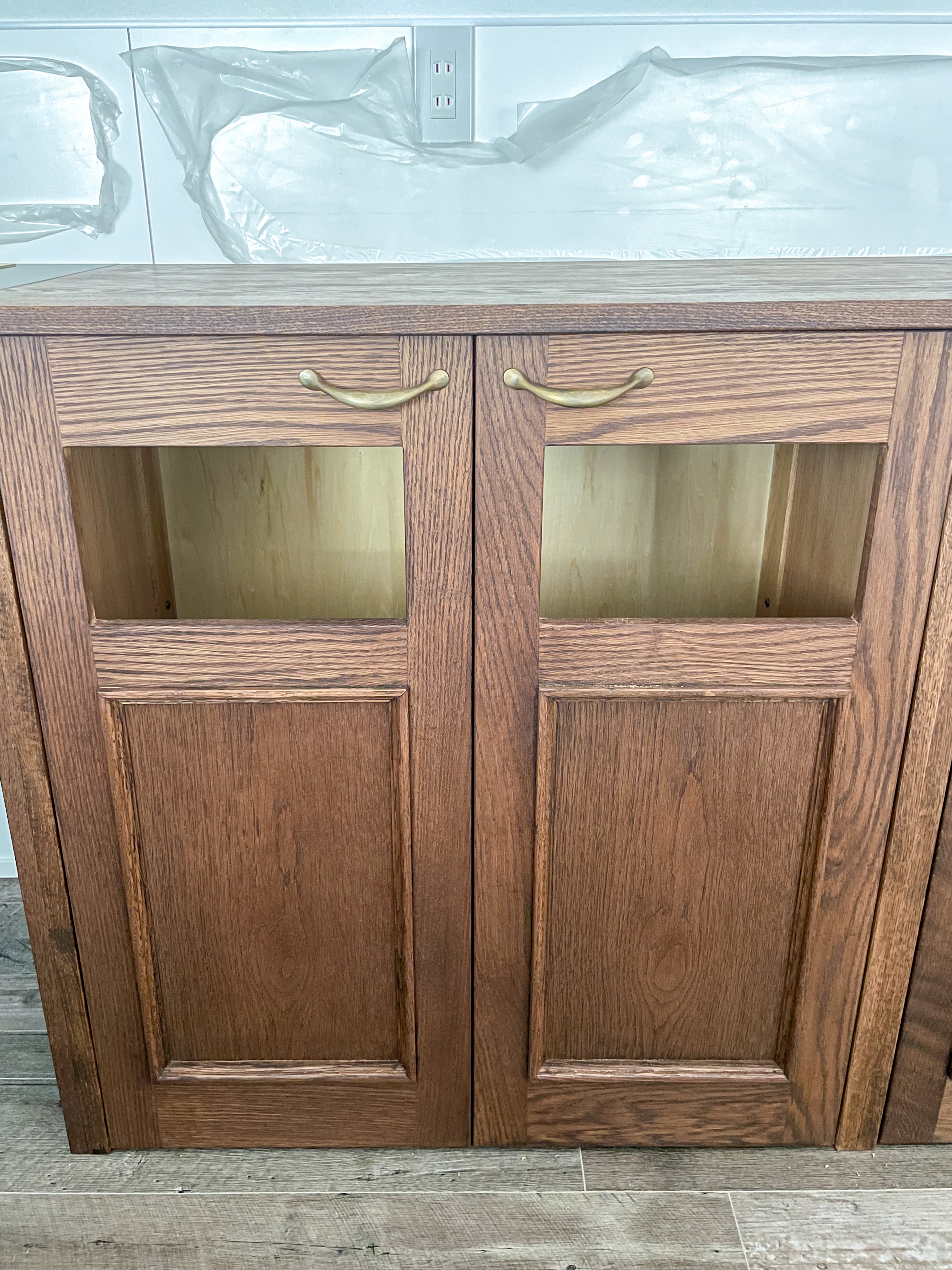 手洗いシンク付きのキッチン収納カウンターをオーダーメイド製作させていただきました。名古屋のオーナー様宅のシステムキッチンの背面に、手洗いシンク、収納スペース、ゴミ箱スペースを備えた総幅3300mmの大きなキッチンバックカウンターを設置。見栄え良いバックシンクとして、カフェなど飲食店にもおすすめです。