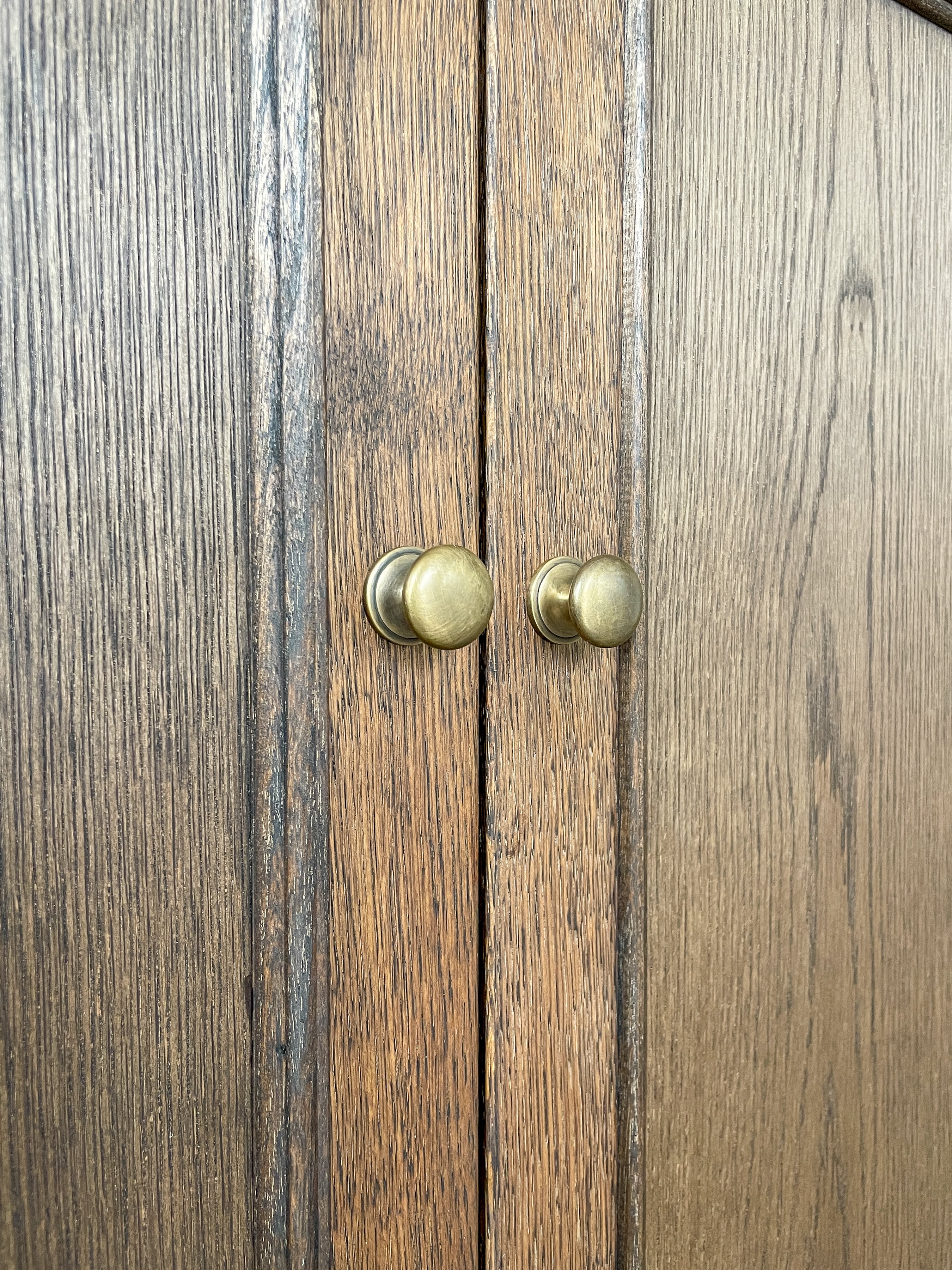 W1400mmのキャビネットを2台並べて、総幅2800mmの大きなキャビネットを製作しました。(搬入経路に問題がなければ、最大2700mmまで一体型で製作可能です。)ホワイトオーク材は高級木材の代名詞、繊細で美しい木目が魅力です。天然木を使った家具は優しい素材感があり、食品や食器、植物などを扱うお店と相性抜群です!